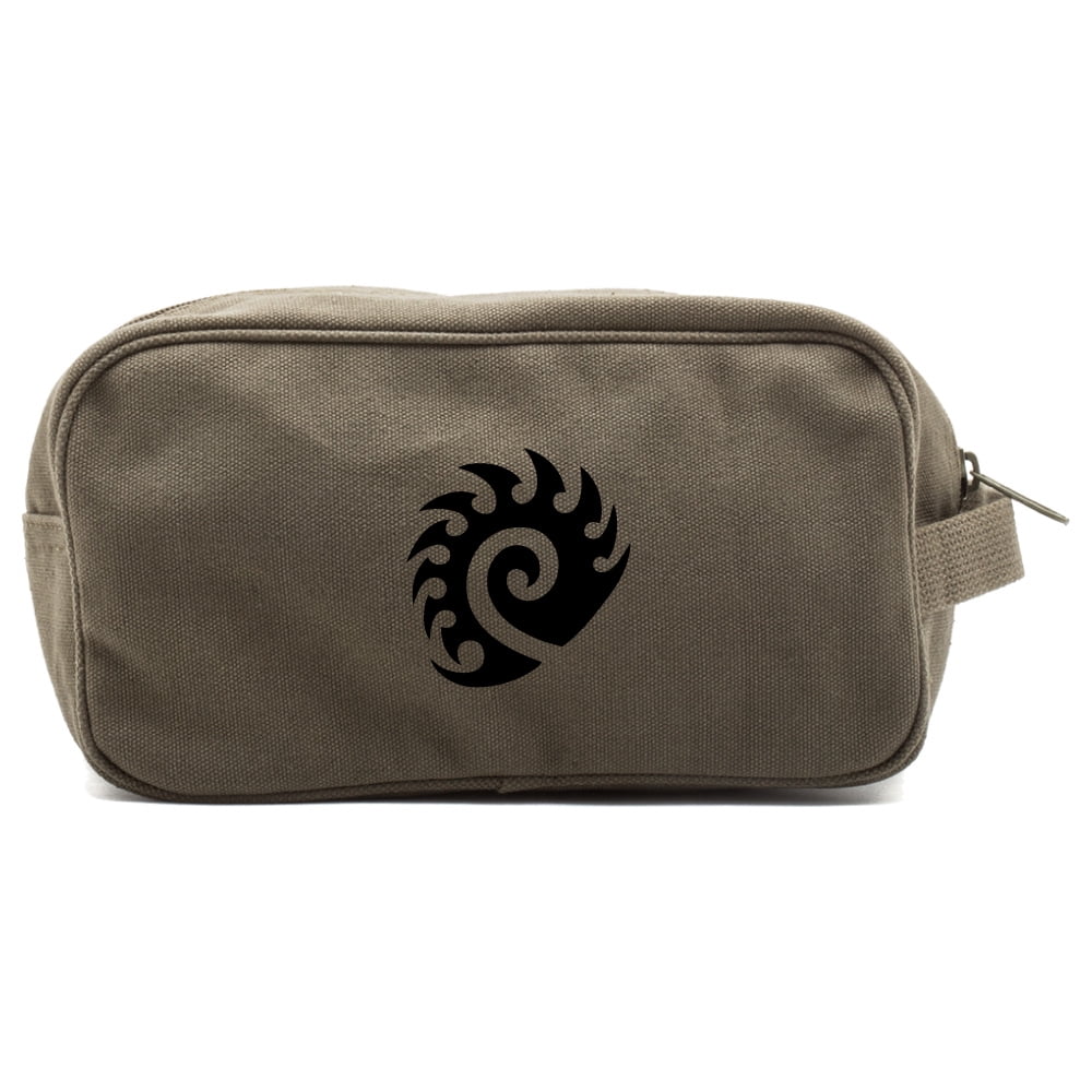 Starcraft Zerg Canvas Dual Two Compartment Travel Toiletry Dopp Kit Bag in Olive
