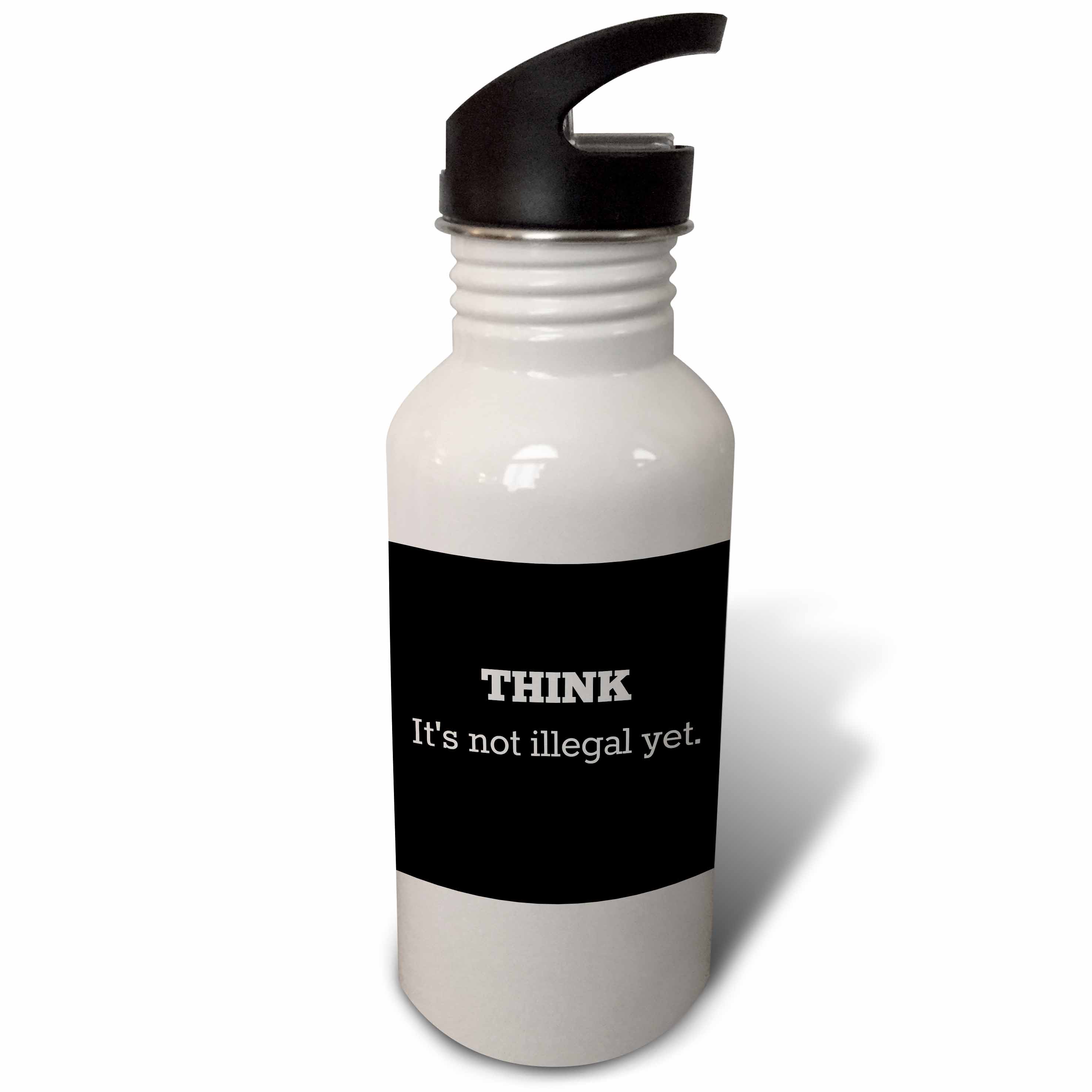 3dRose Think its not illegal yet white print with black background, Sports Water Bottle, 21oz