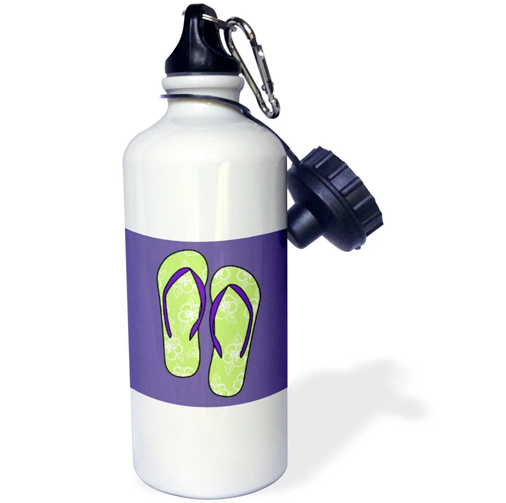 Cute Flip Flops Lime Green Flower Print and Purple 21 oz Sports Water Bottle wb-77534-1