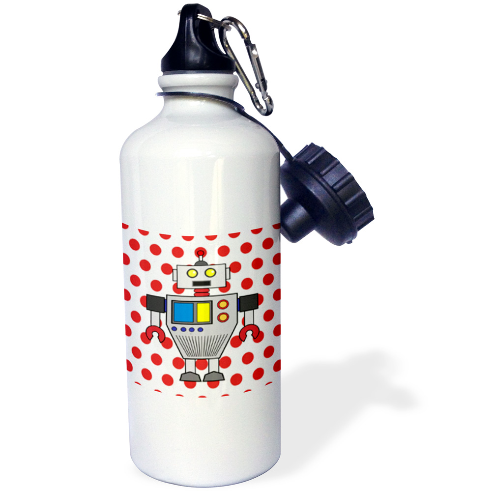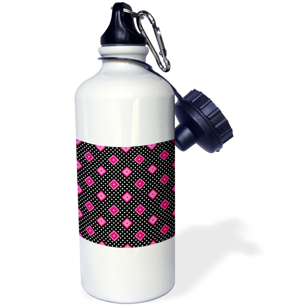 3dRose Pink - Geometric Print Black - Diamonds and Polka Dots, Sports Water Bottle, 21oz