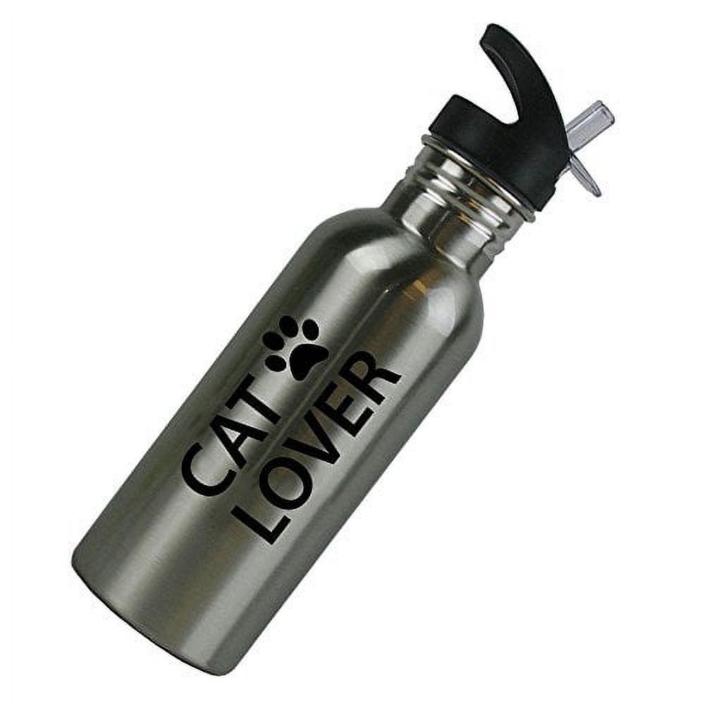 Cat Lover with Paw Print Stainless Steel Silver 20 Oz (600mL) Water Bottle with Sport Top, Straw