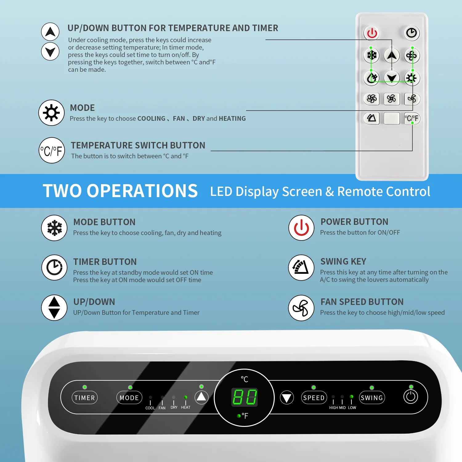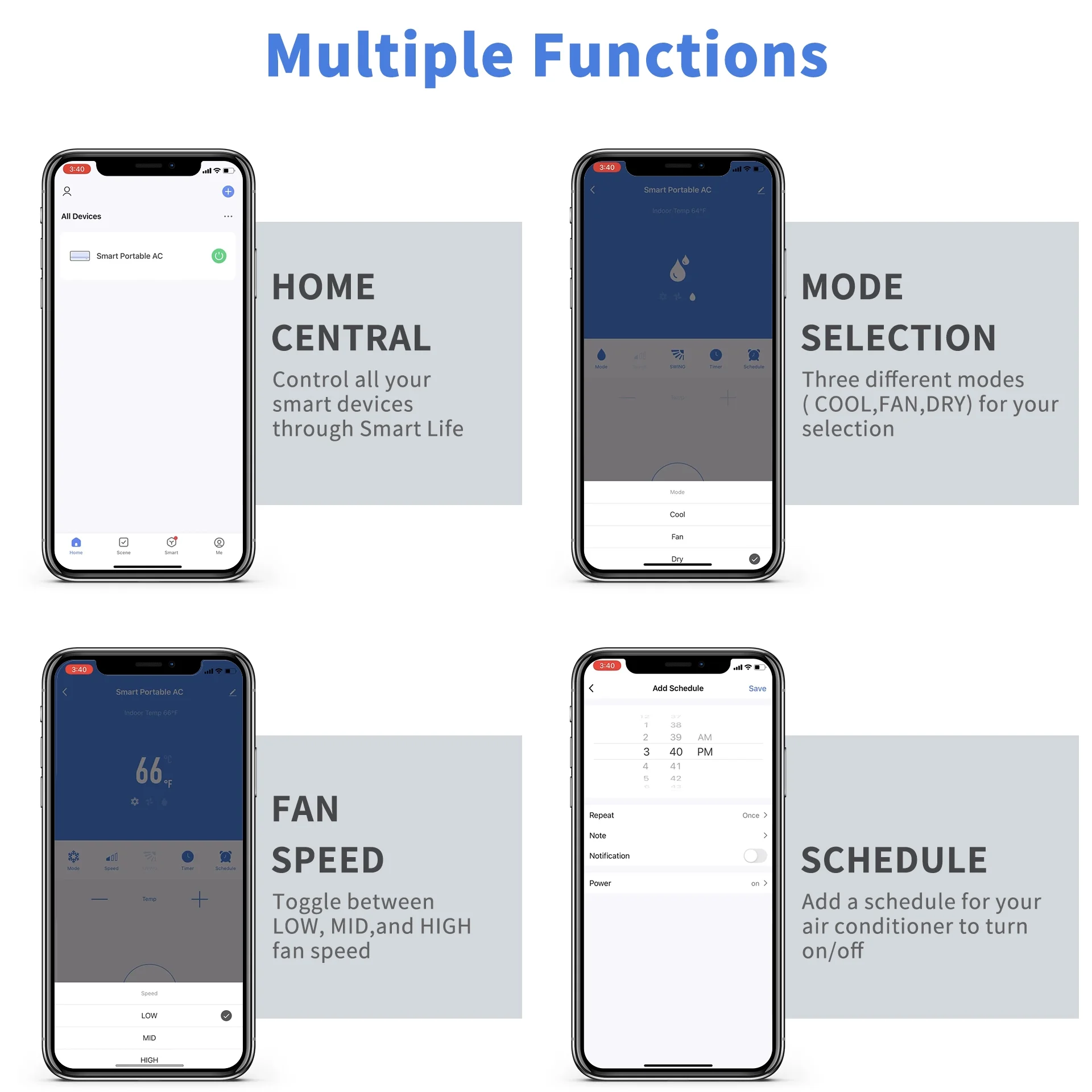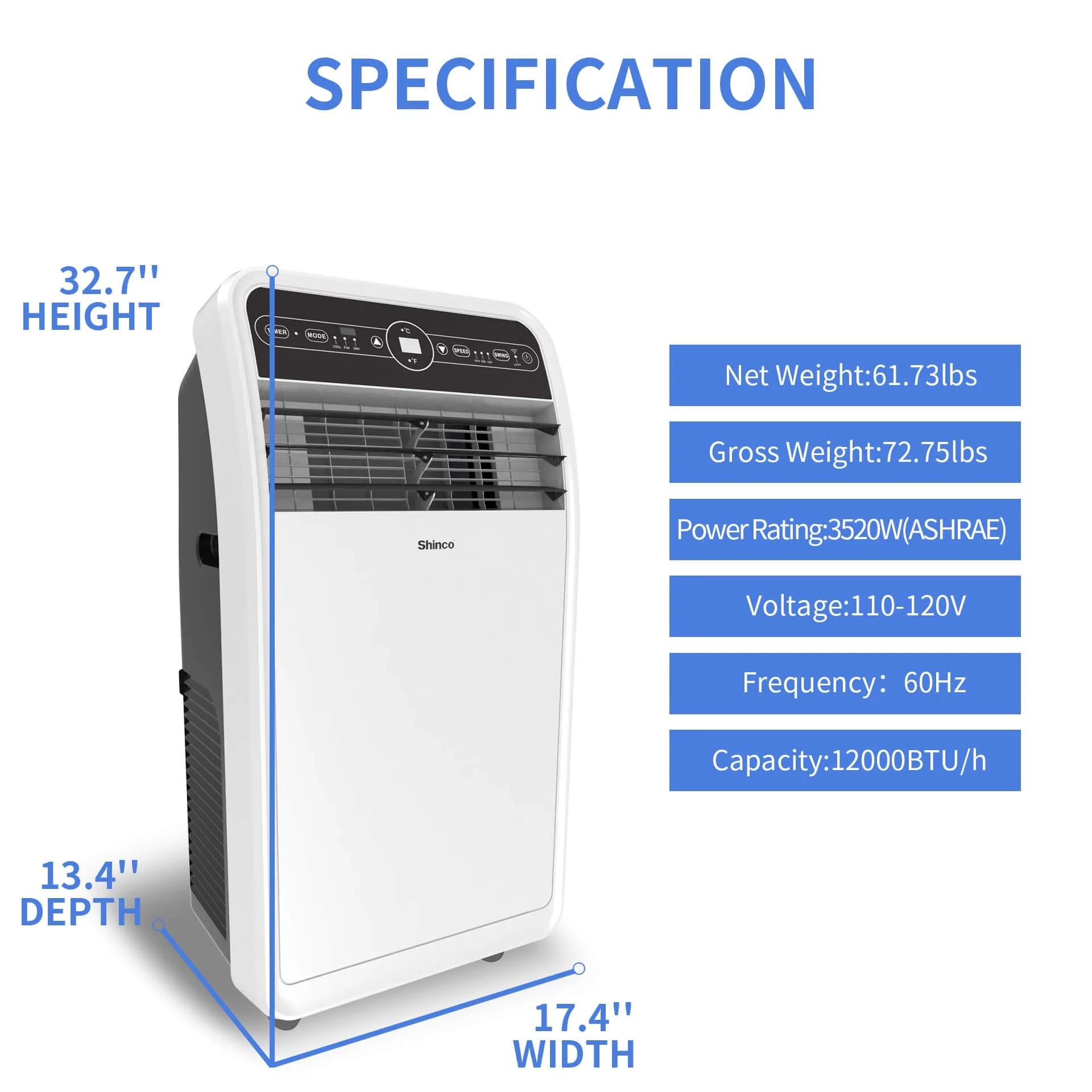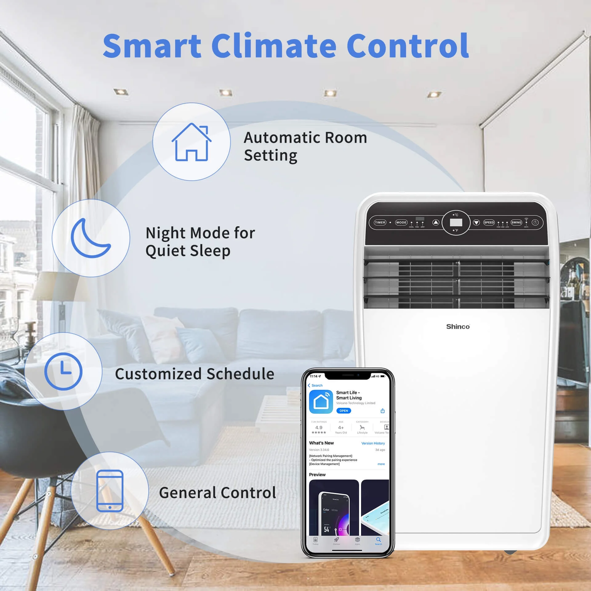 Shinco 7800BTU(12,000 BTU ASHRAE) Smart 3-in1 Portable Air Conditioner Cools Rooms to 400 sq.ft