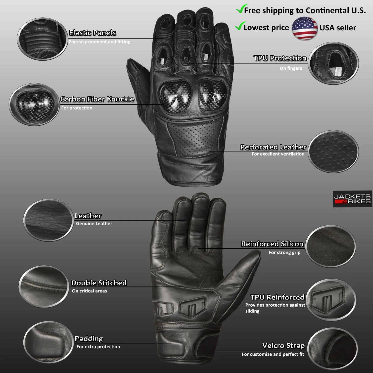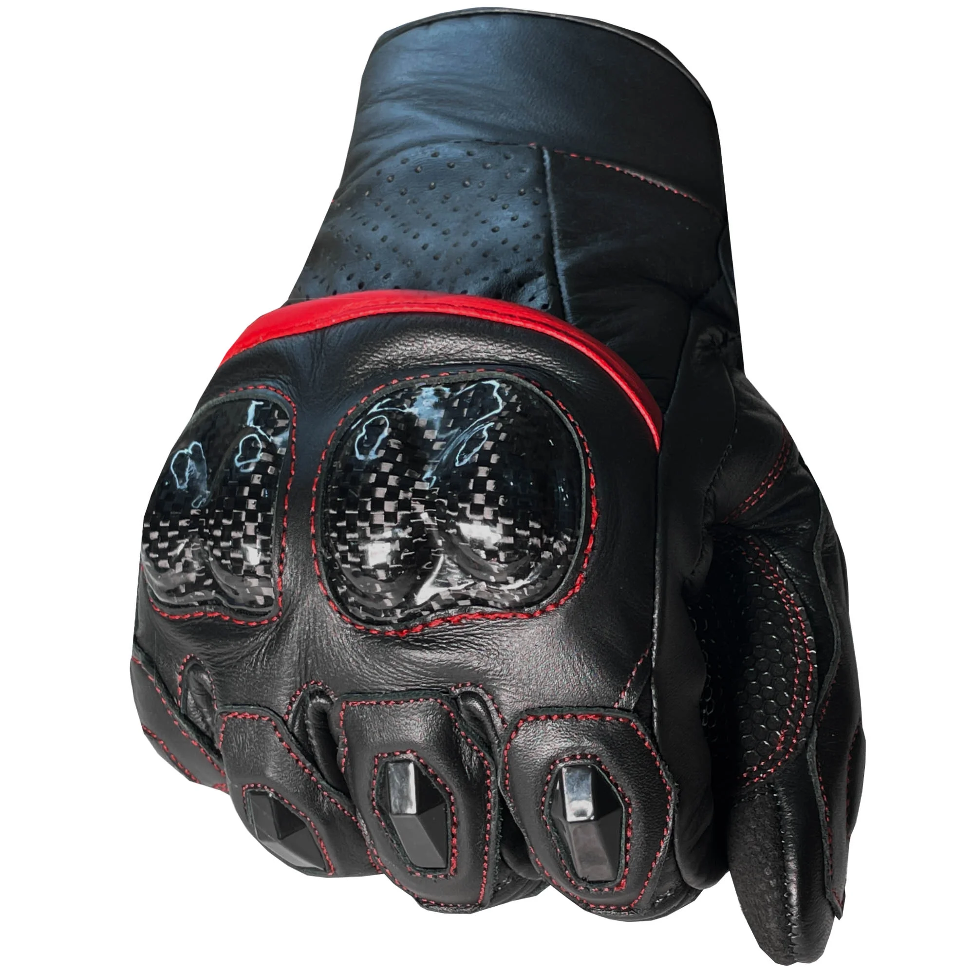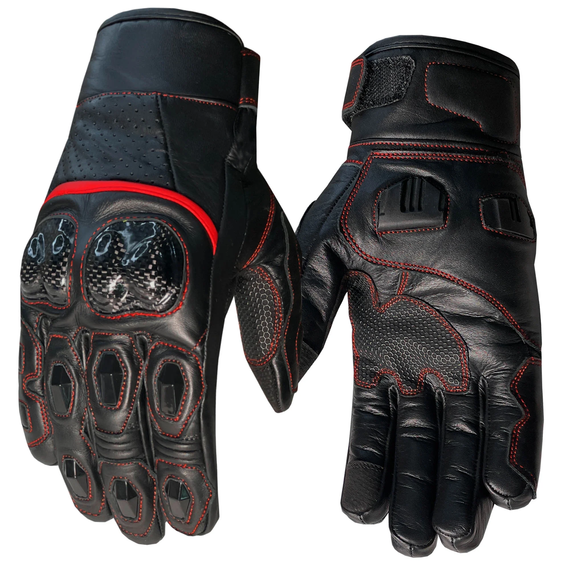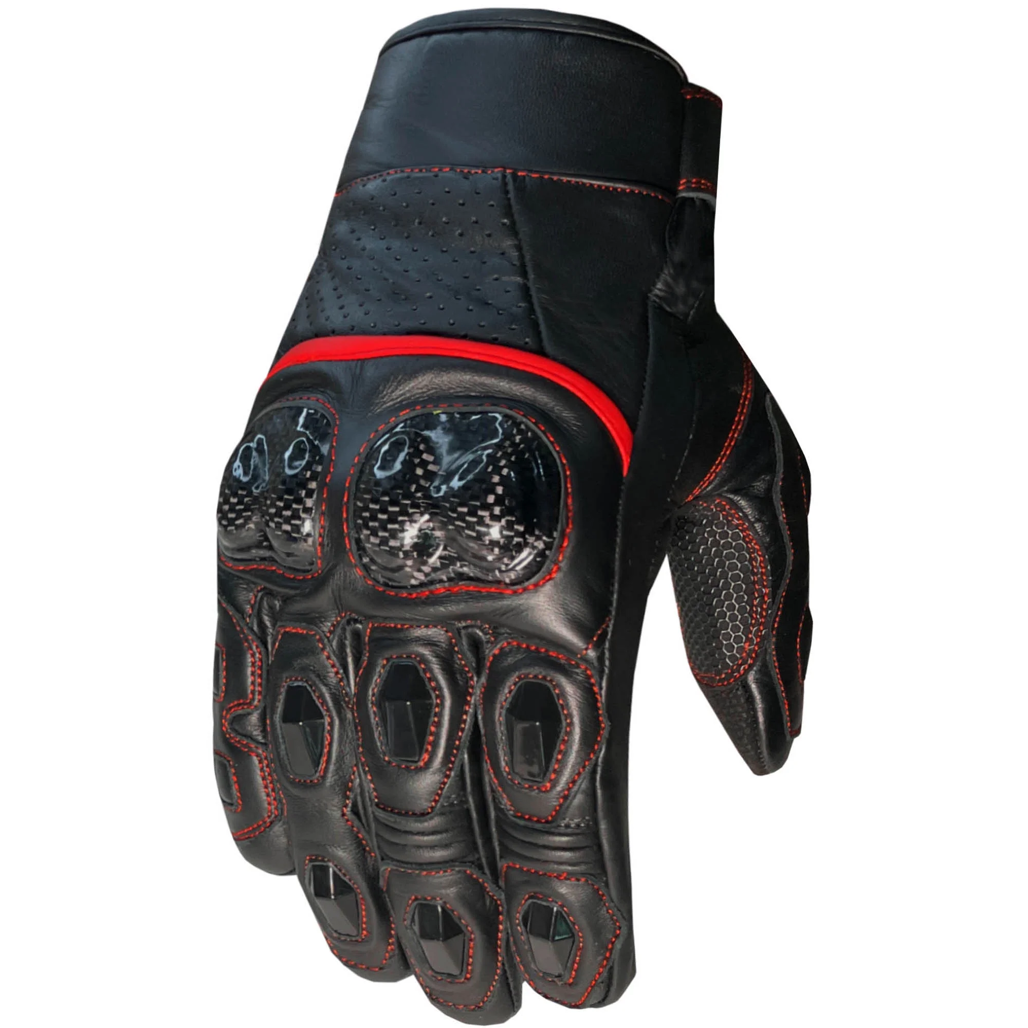 Men's Premium Leather Motorcycle Cruising Street Palm Sliders Biker Gloves Black Red S