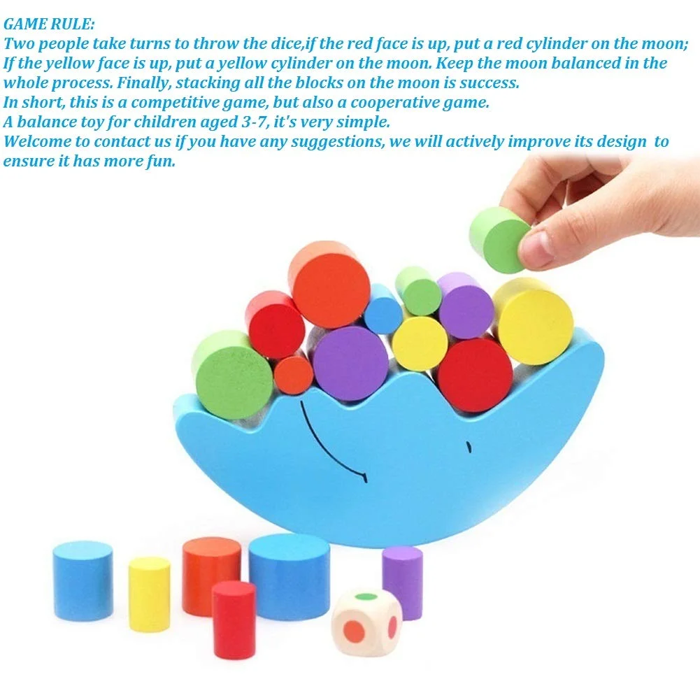 Baby Educational Toys,Wooden Baby Toys Set Moon Crescent Balance Stacking Blocks Children Kids Educational Gift, Baby rPlay Toys