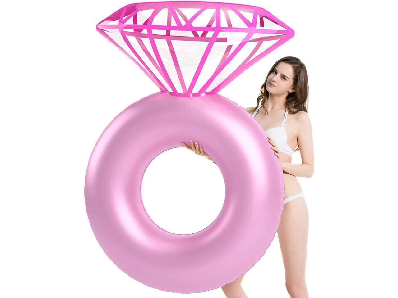 Inflatable Diamond Ring Pool Float - Pool Wedding Party Decorations, Swimming Ring for Indoor and Outdoor Beach Water Activities,for Adults & Kids,Pink
