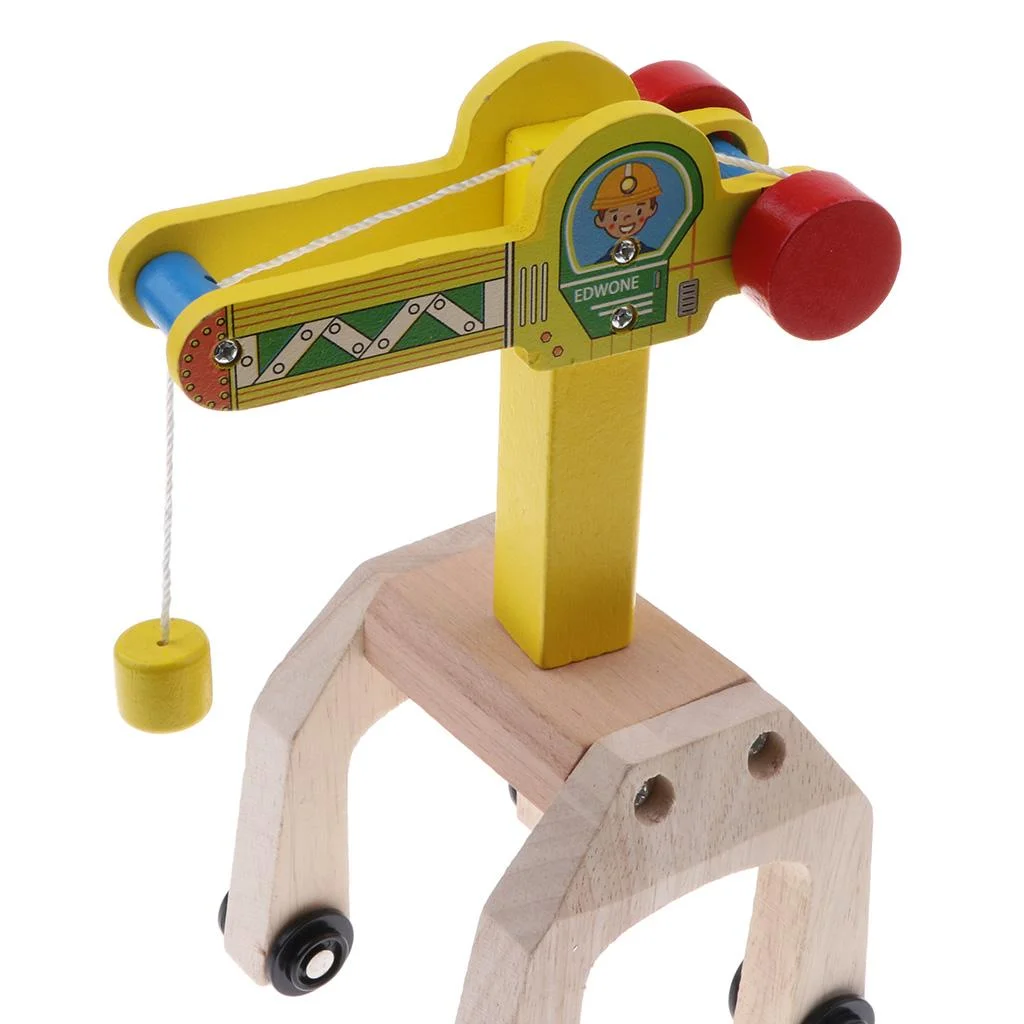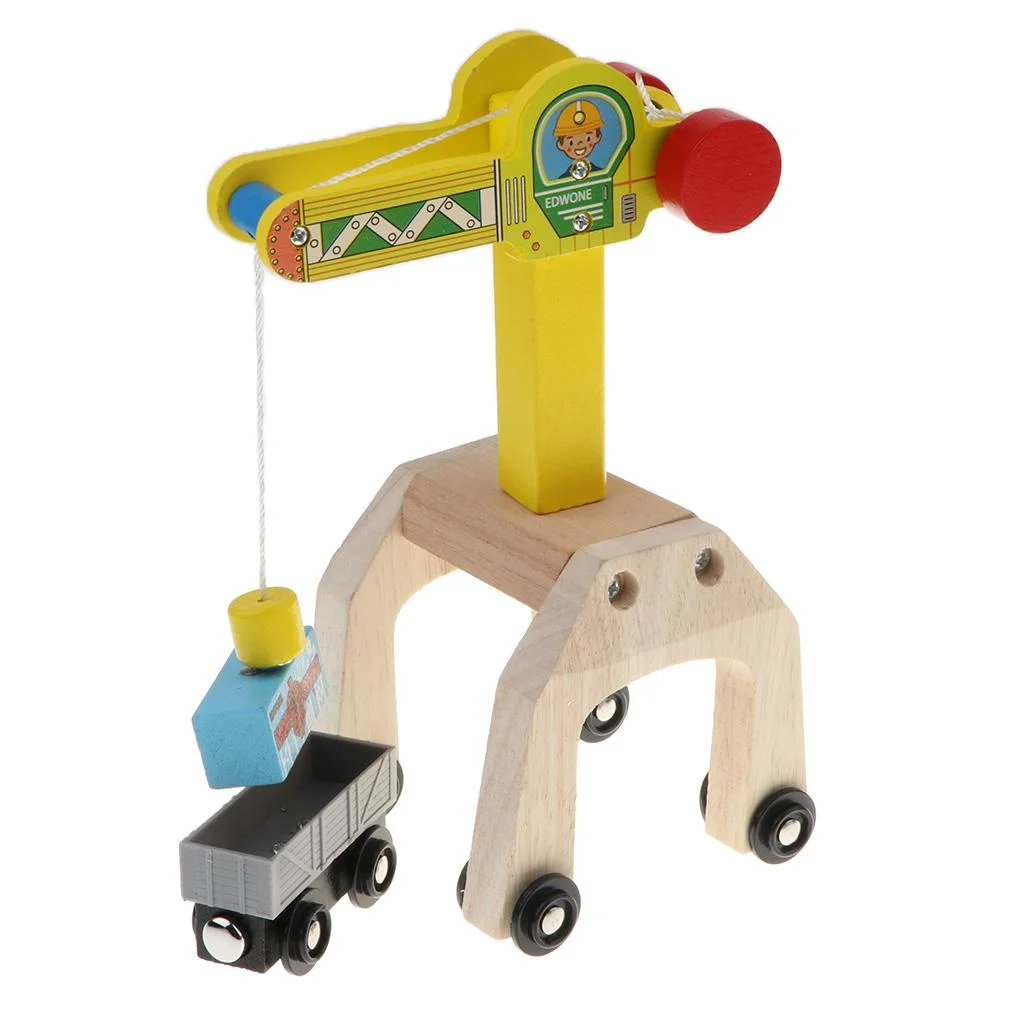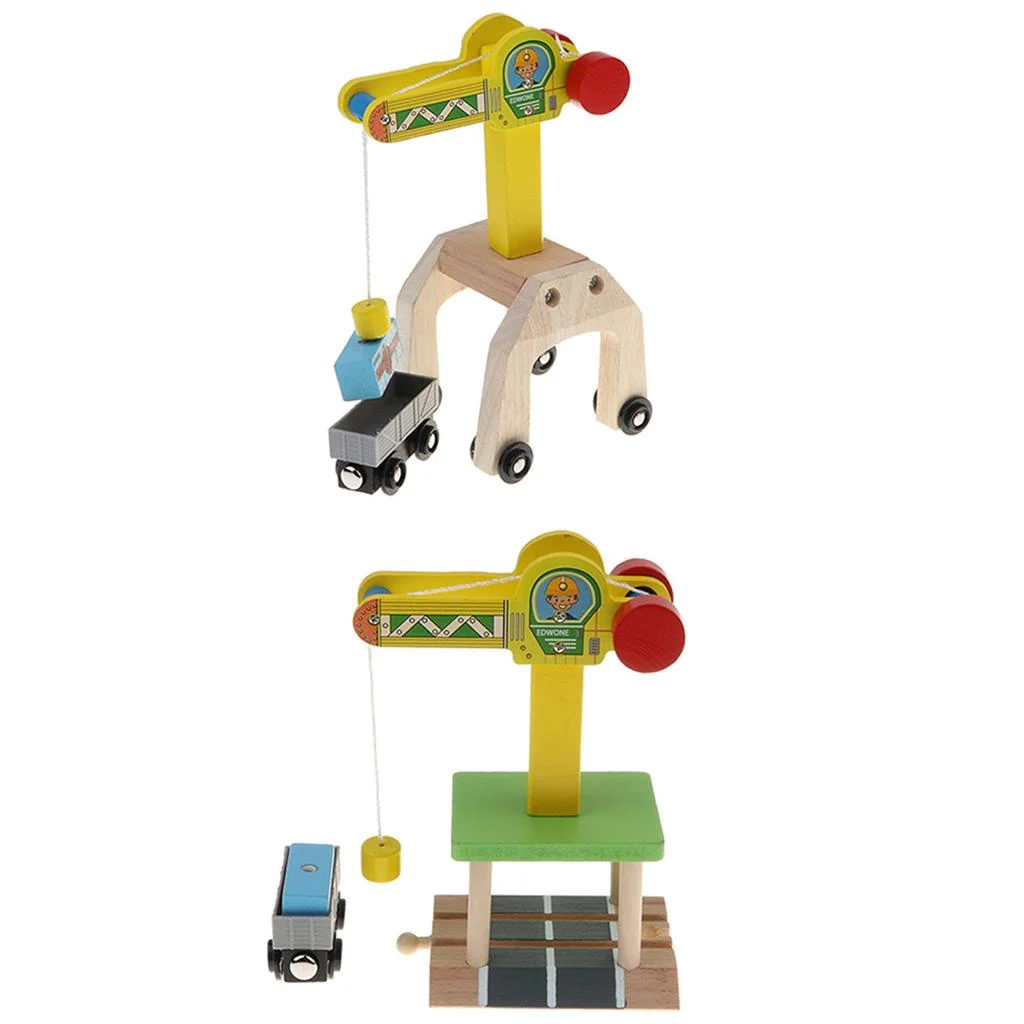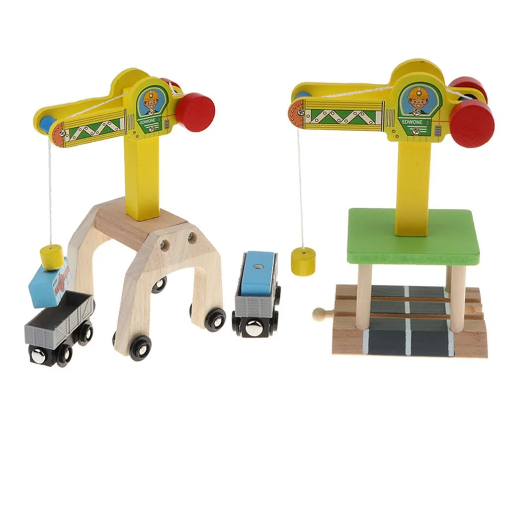 Kids Preschool Wooden Toy Trains Set Building Blocks Construction kits Play Activity, Fine Crane & Freight Car