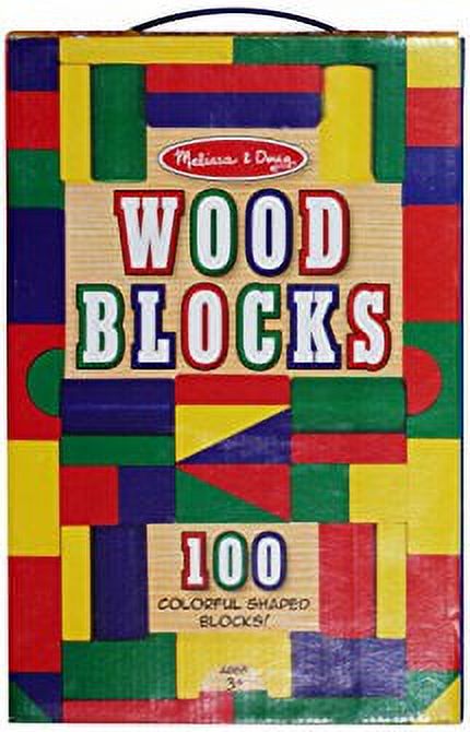 Melissa & Doug Wooden Building Blocks Set - 100 Blocks in 4 Colors and 9 Shapes