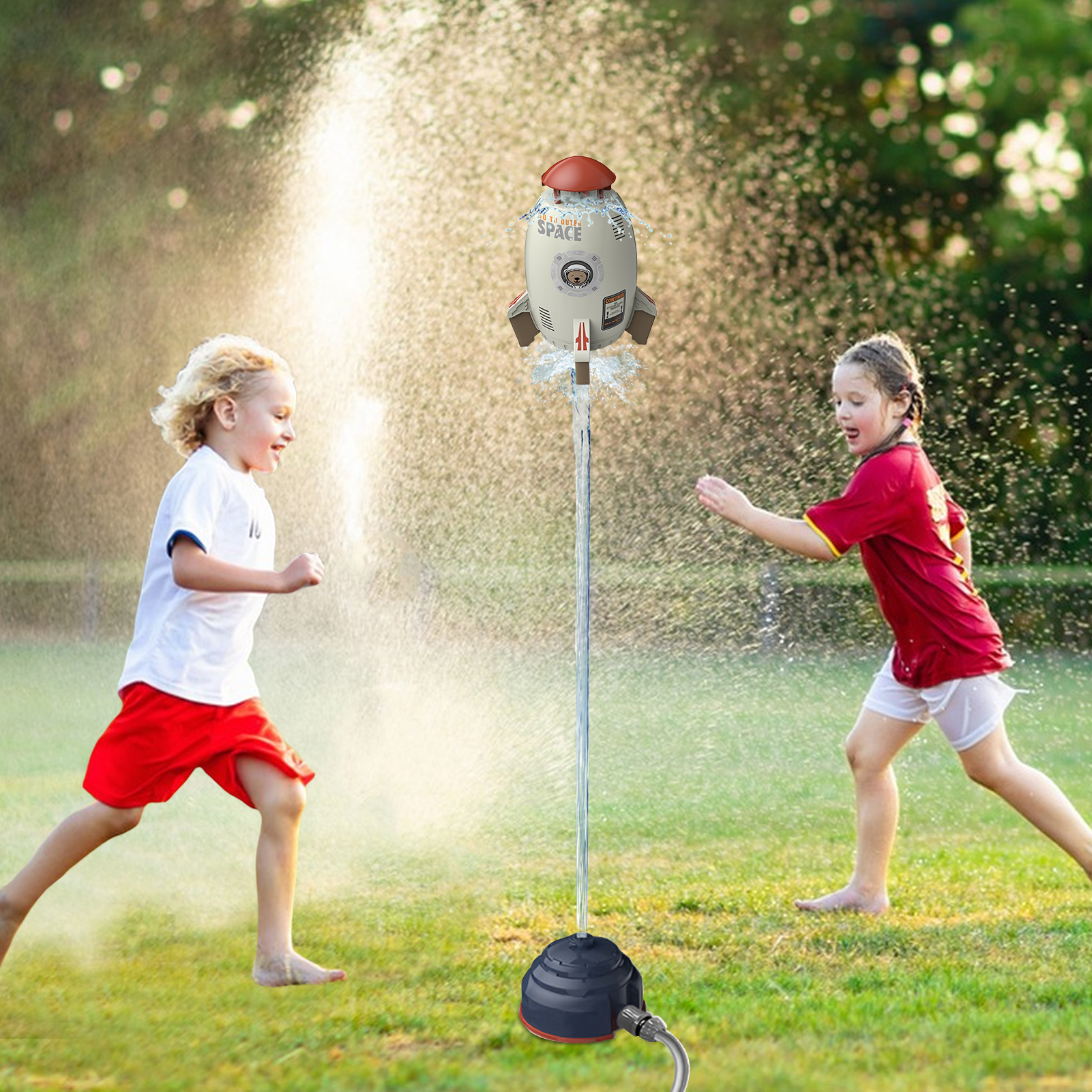 ALSLIAO Rocket Launcher Toys Outdoor Rocket Water Pressure Lift Sprinkler Toy Fun red