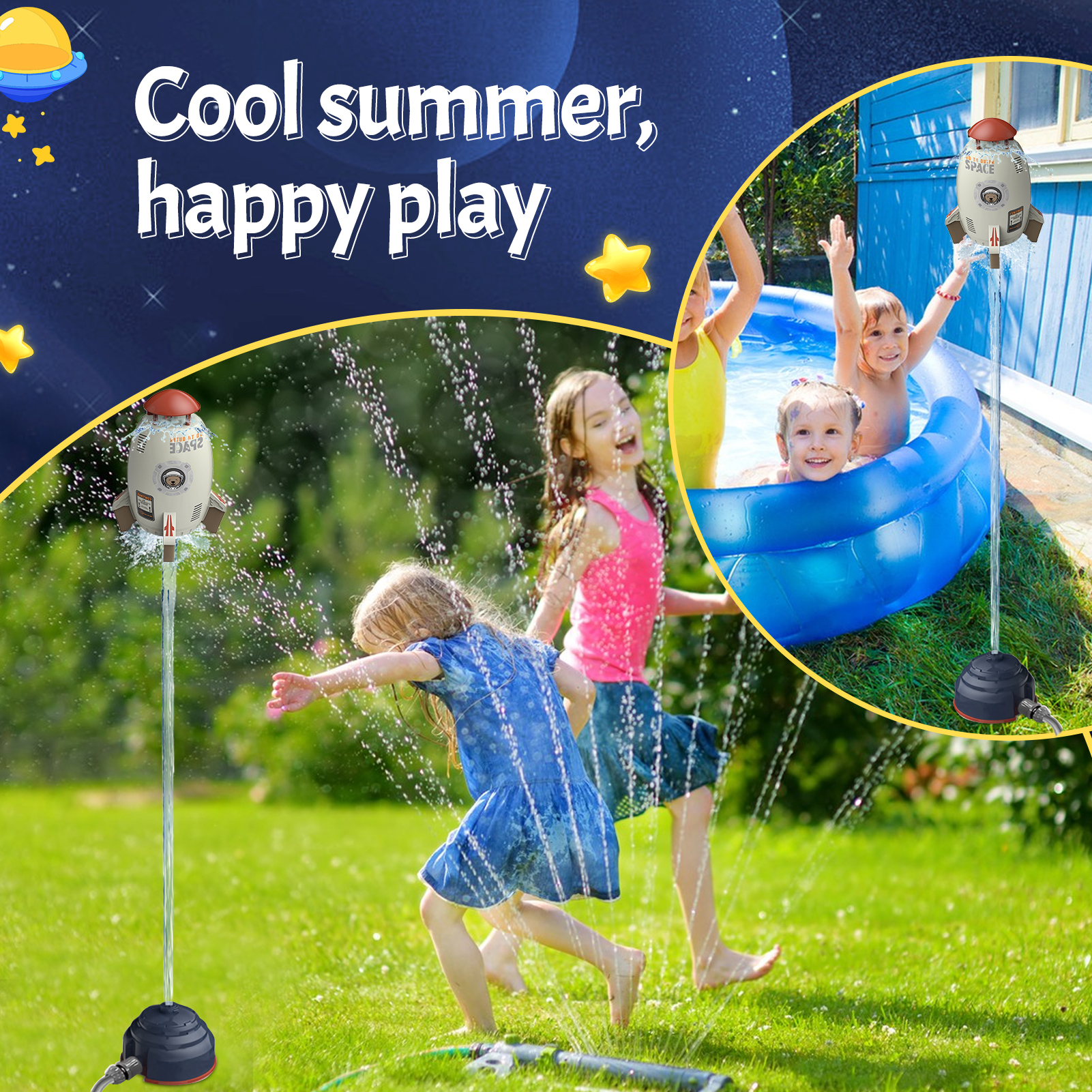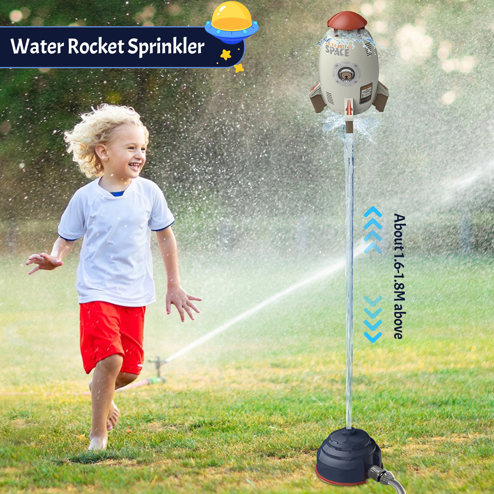 Sprinkler for Kids - Rocket Outdoor Water Toys Outdoor Yard Sprinkler 360-Degree Rotation Attaches to Garden Hose Splashing Fun Toys for 3 4 5 6 7 8 9 10 Year Old Boys Girls Gift