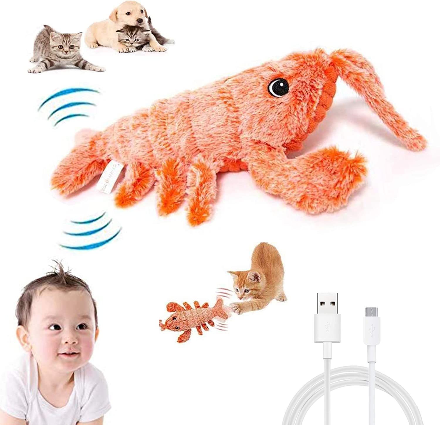 Flopping Lobster Cat Toy with Catnip Bag, Motion Kitten Toy, Plush Interactive Cat Toys, Fun Toy for Cat Exercise,USB Charging, Lifetime Replacement Catnip