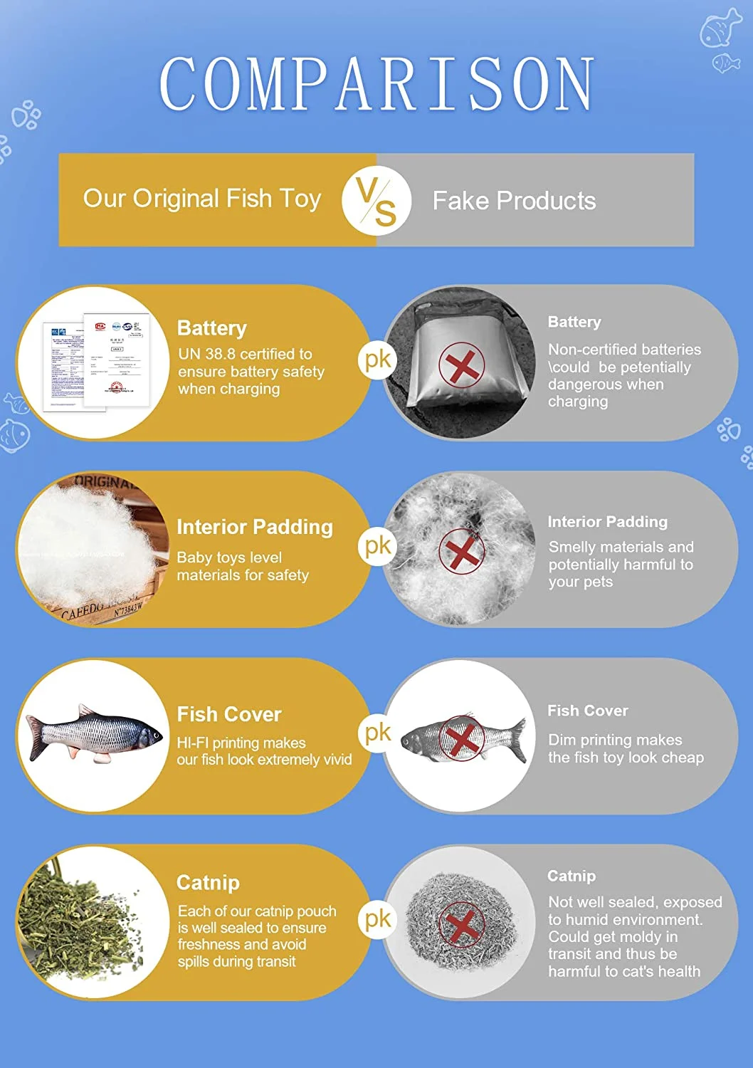 Electric Flopping Fish , Moving Cat Kicker Fish Toy, Realistic Flopping Fish, Wiggle Fish Catnip Toys, Motion Kitten Toy, Plush Interactive Cat Toys, Fun Toy for Cat Exercise
