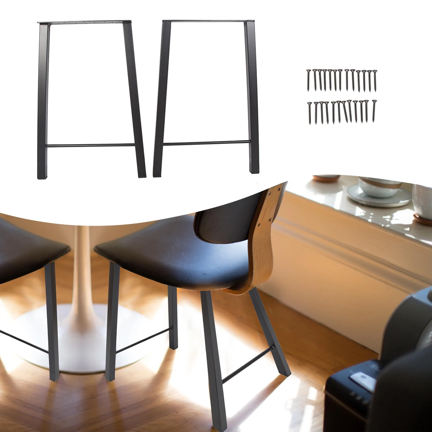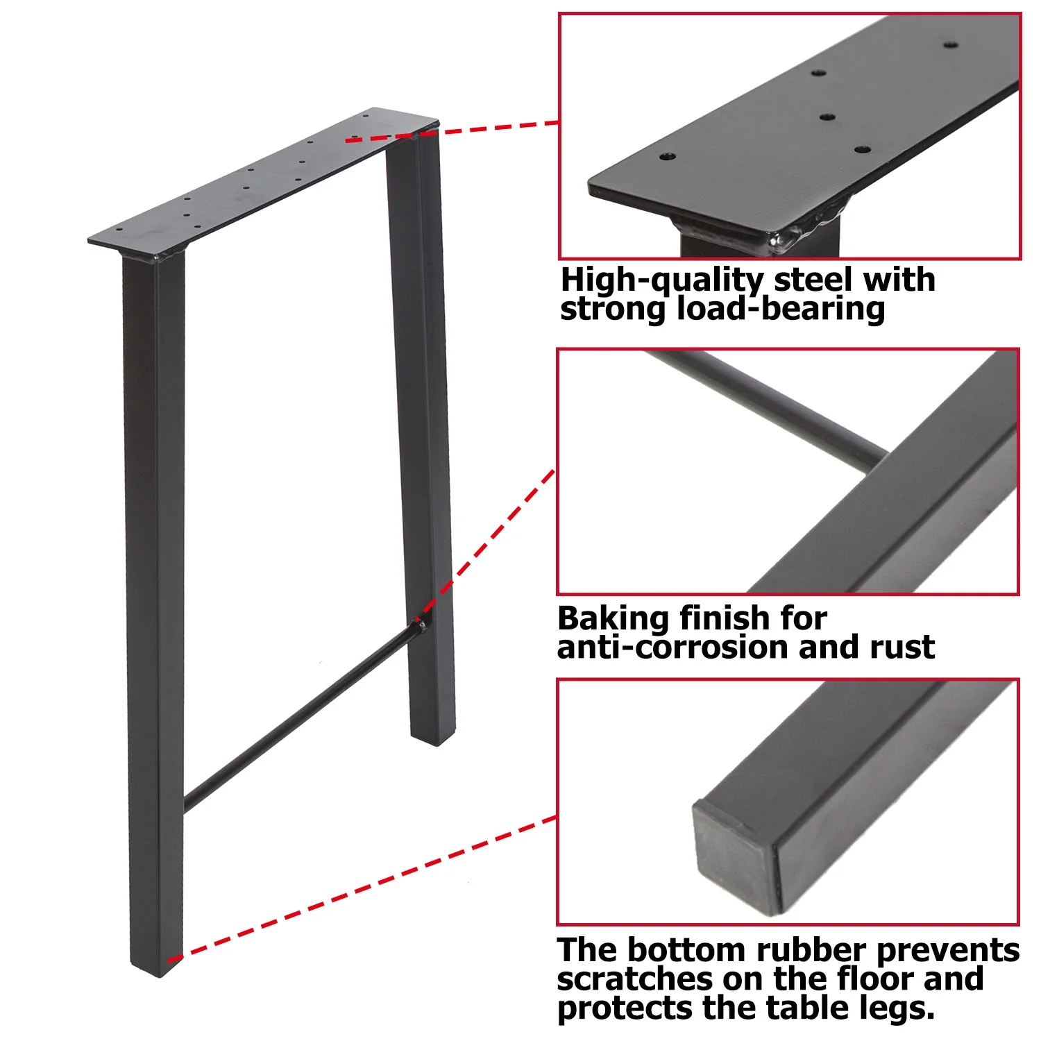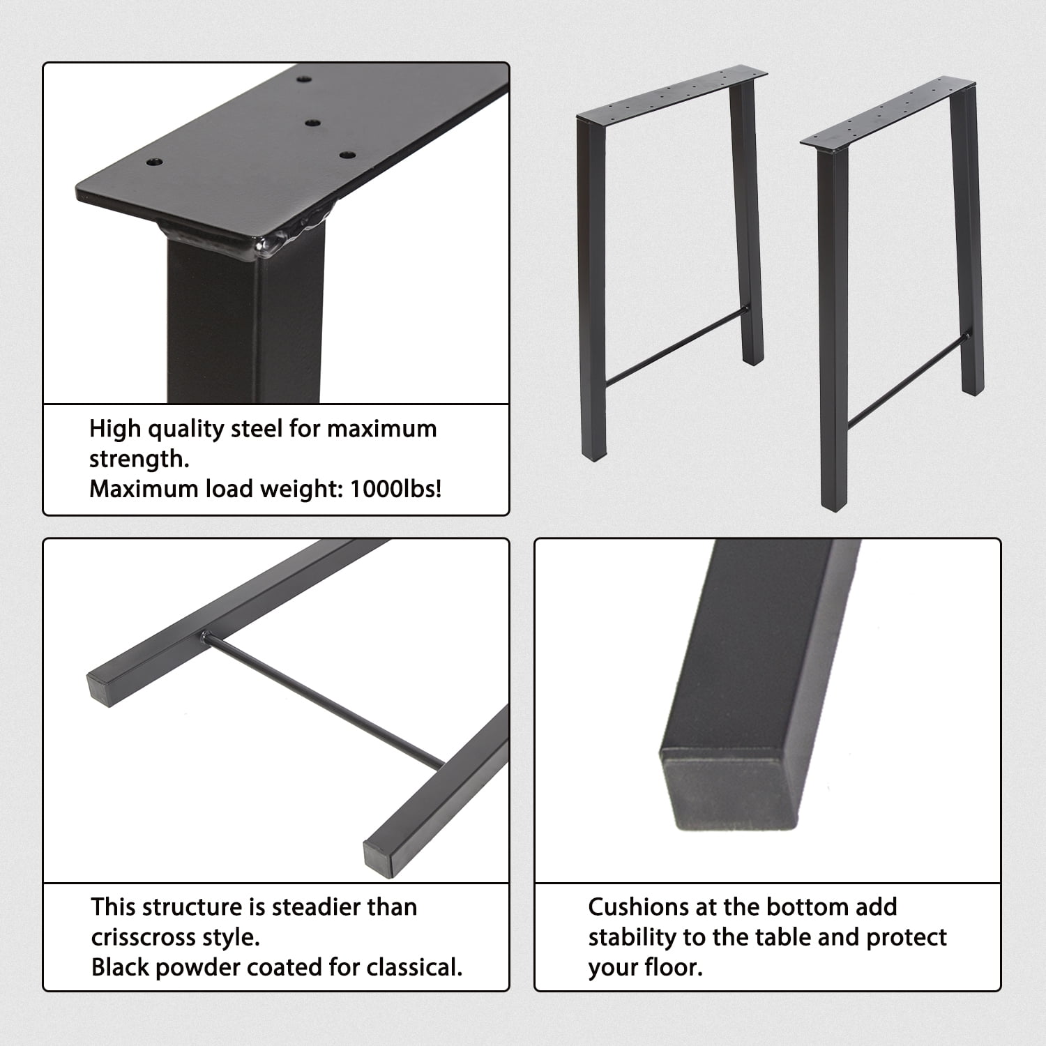 28" Metal Table Legs Desk Legs Furniture Legs Bench Legs 28"H×20"W Set of 2 Heavy Duty Black