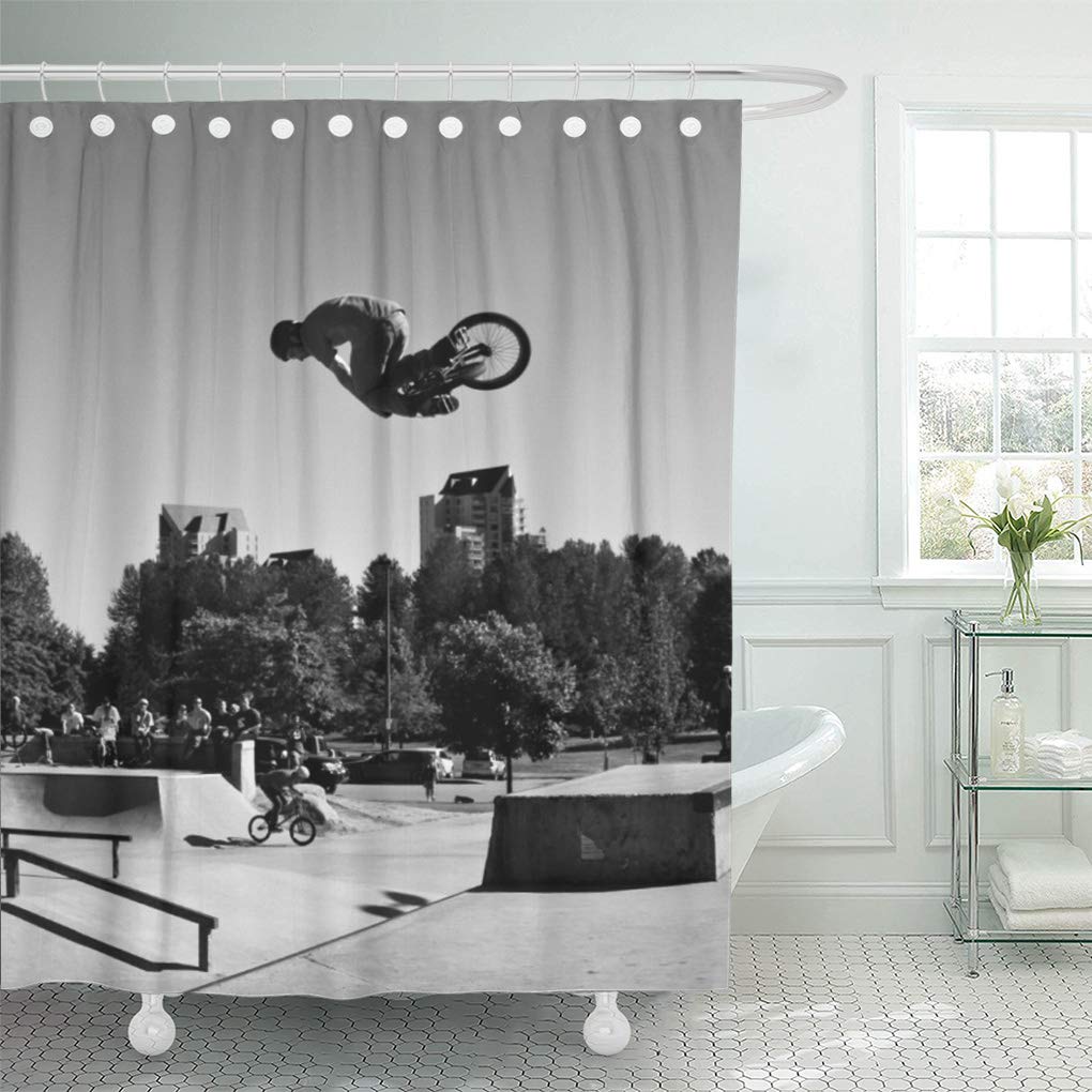 ATABIE Norco James Van De BMX Table Black White Photography Shower Curtain 66x72 inch