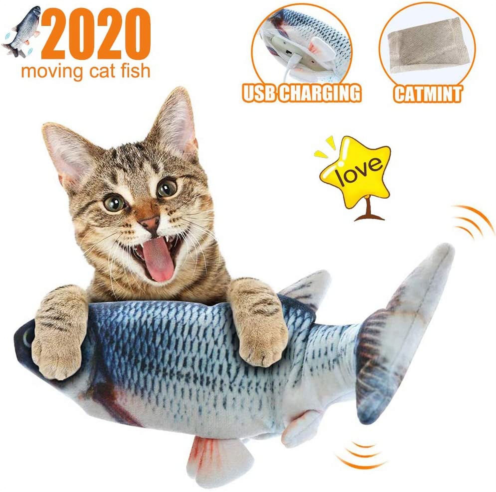 Amerteer Moving Cat Kicker Fish Toy, Realistic Flopping Fish, Wiggle Fish Catnip Toys, Motion Kitten Toy, Plush Interactive Cat Toys, Fun Toy for Cat Exercise, Cat-Fish-Toy-Kitty-Interactive