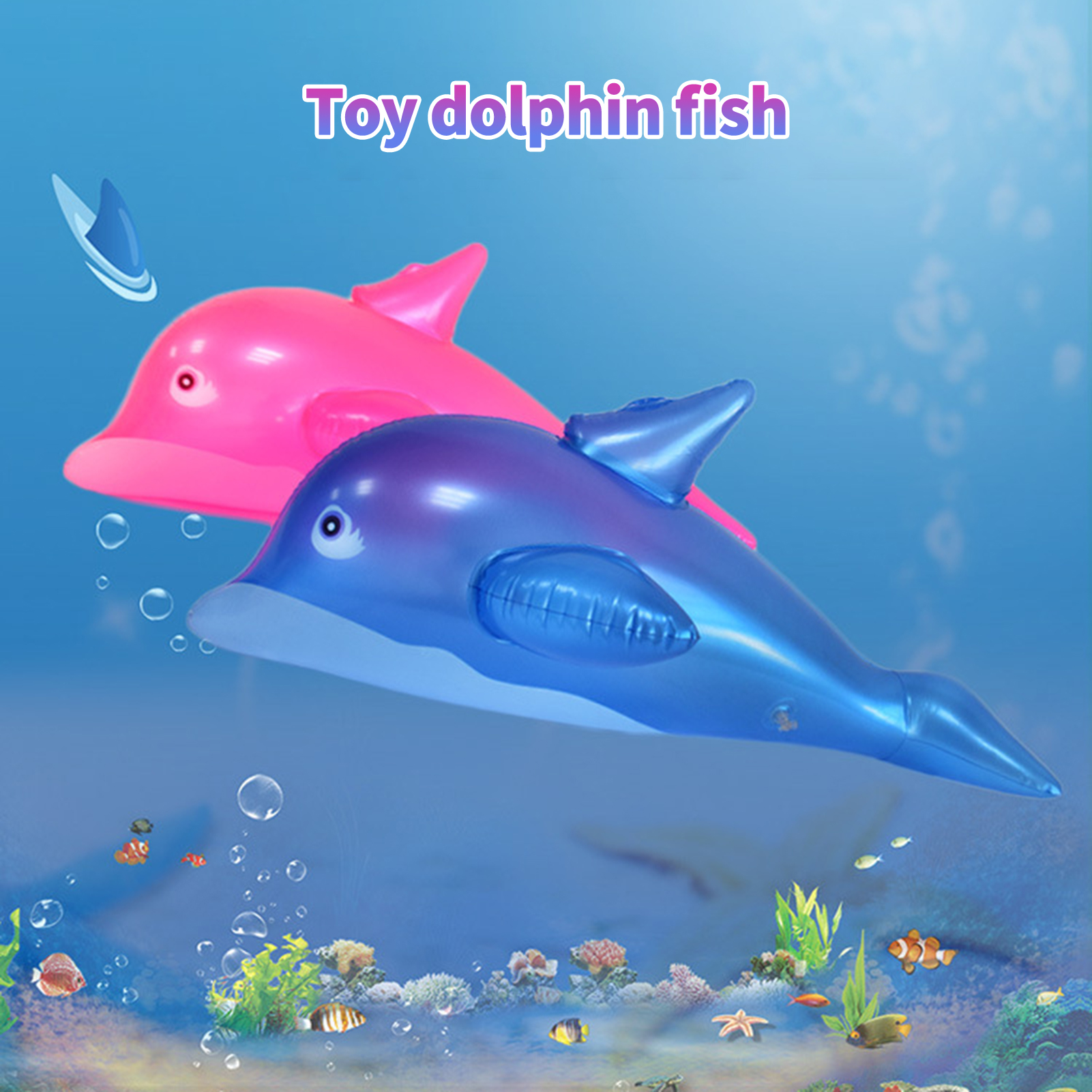 Wilitto Cute Inflatable Toy Airtight Lovely Entertainment PVC Inflatable Dolphin Fish Children Toy for Swimming Pool Blue