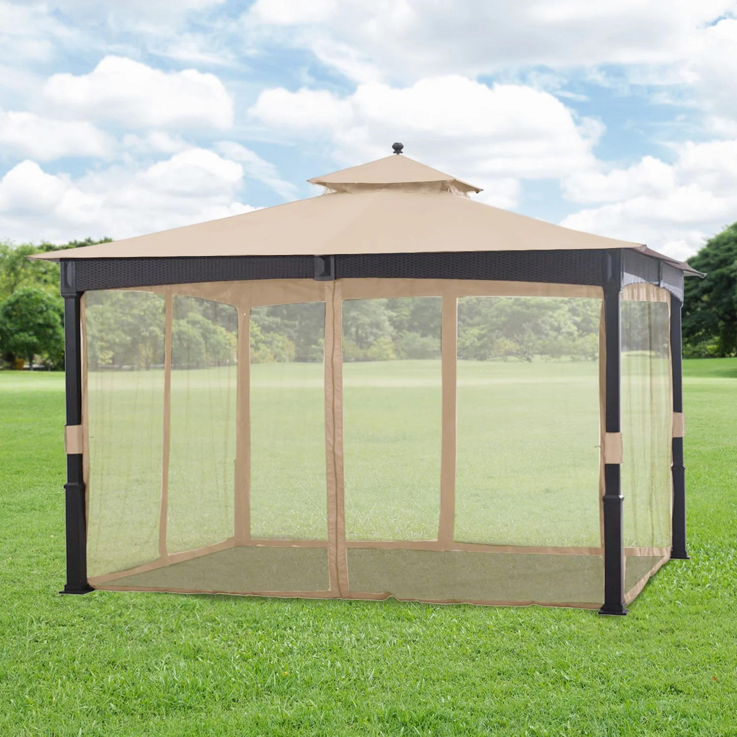 Garden Winds Replacement Canopy Top Cover and Netting Set for Wicker 10 x 12 Gazebo - RipLock 350