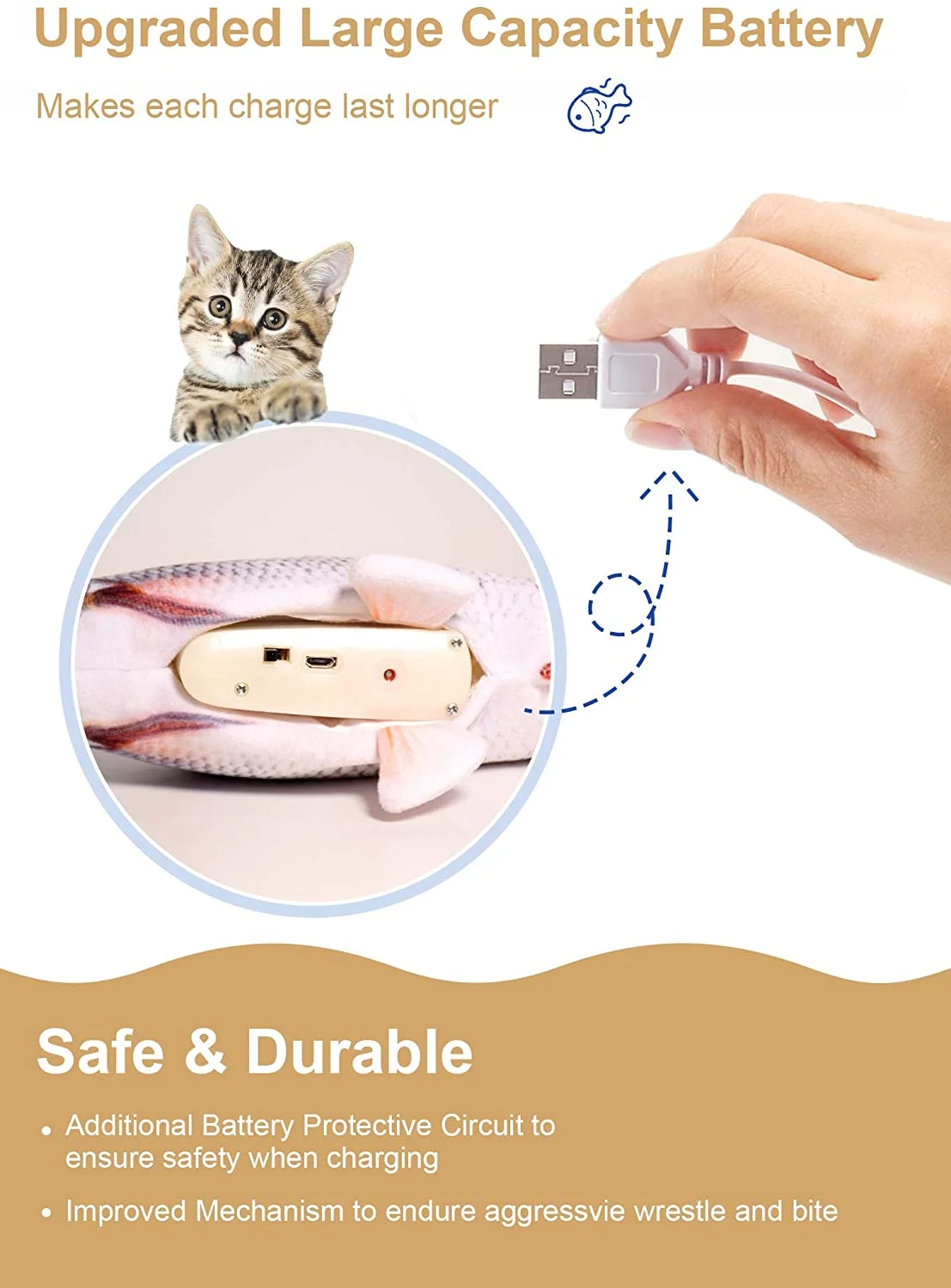 Electric Flopping Fish 10.5", Moving Cat Kicker Fish Toy, Realistic Floppy Fish Dog Toy, Wiggle Fish Catnip Toys, Motion Kitten Toy, Plush Interactive Cat Toys, Fun Toy for Cat Exercise