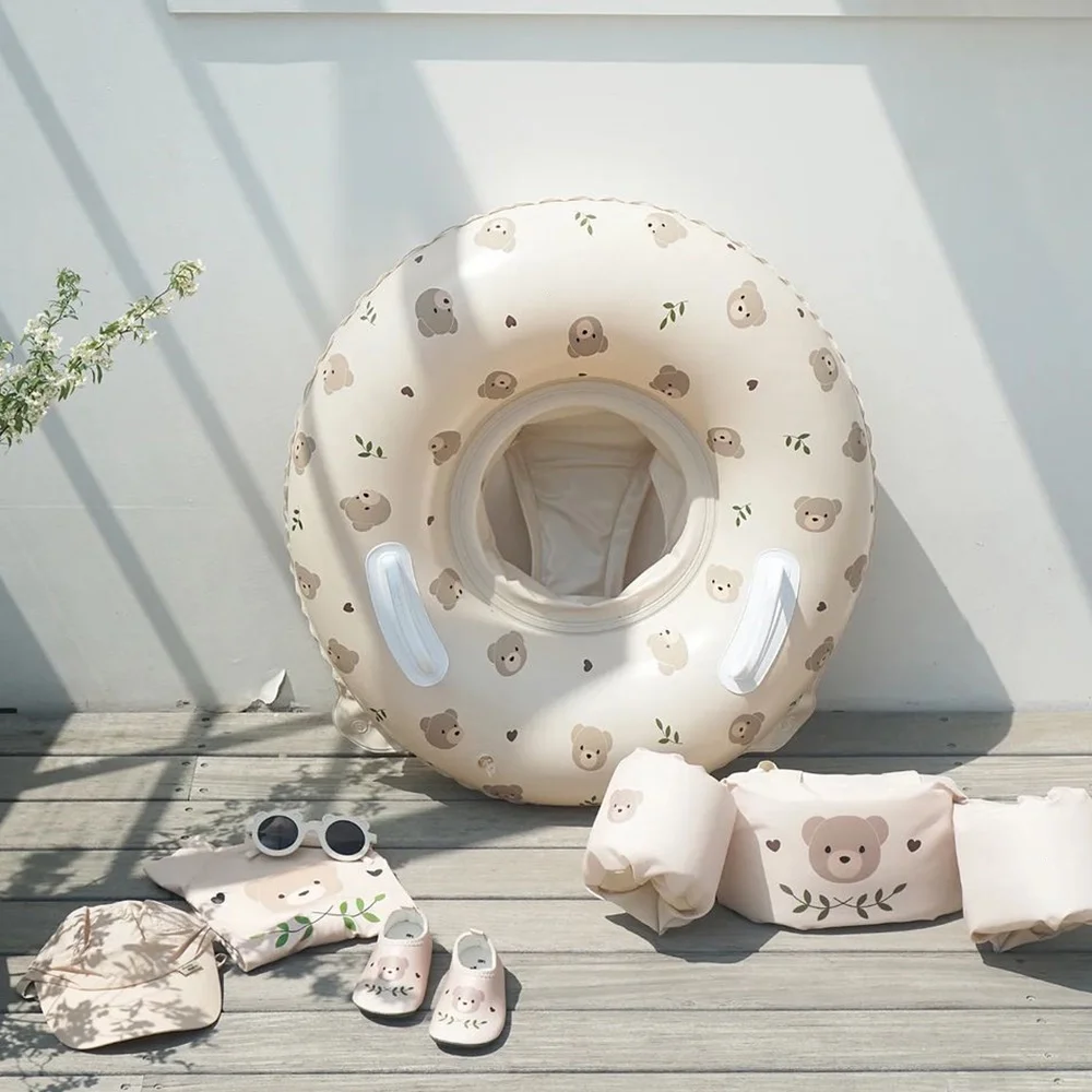 Occkic Baby Pool Float Infant Seat Boat Inflatable Swimming Ring Trainer Waist Pool Float with Double Handle Childrens Bathtub