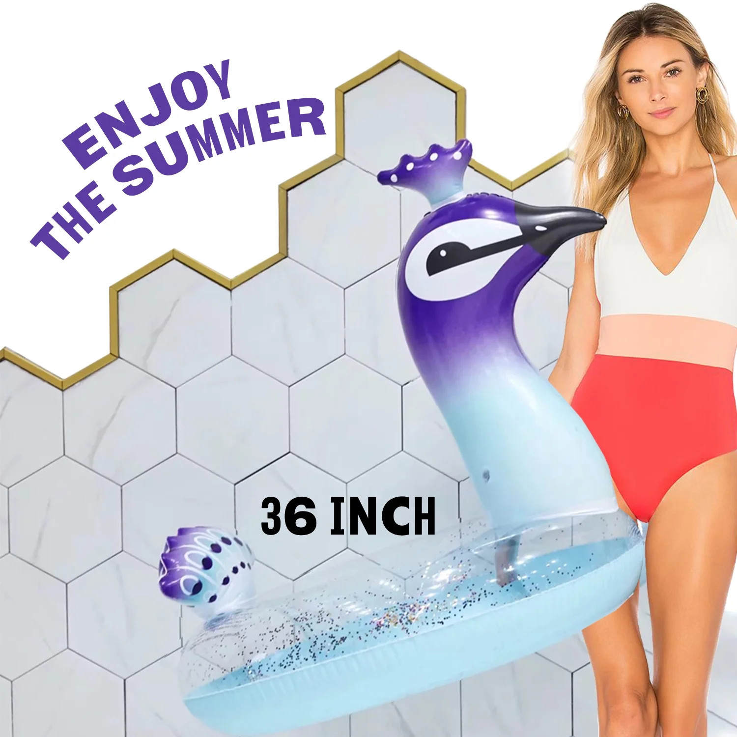 Ava Peacock Pool Float, Latest Fun Colors Inflatable Swim Ring Swimming Pool Floatie, for Babies and Toddlers Age 6 and Up-36 Inch