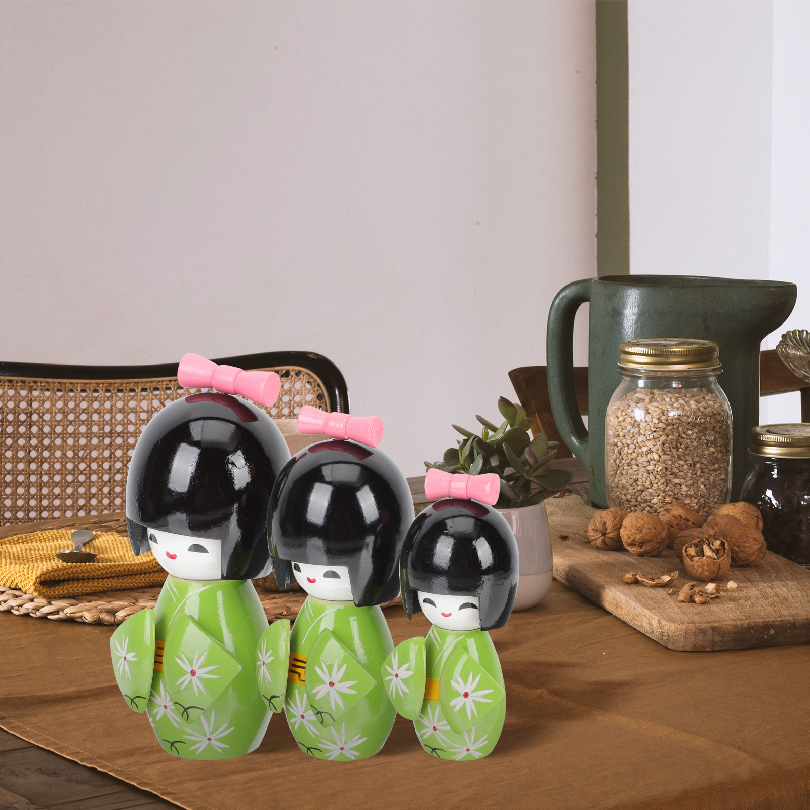 Kimono Wooden Doll Traditional Crafts Japanese Home Decor Housewarming Gift Desk Topper Manual Common 2 Sets