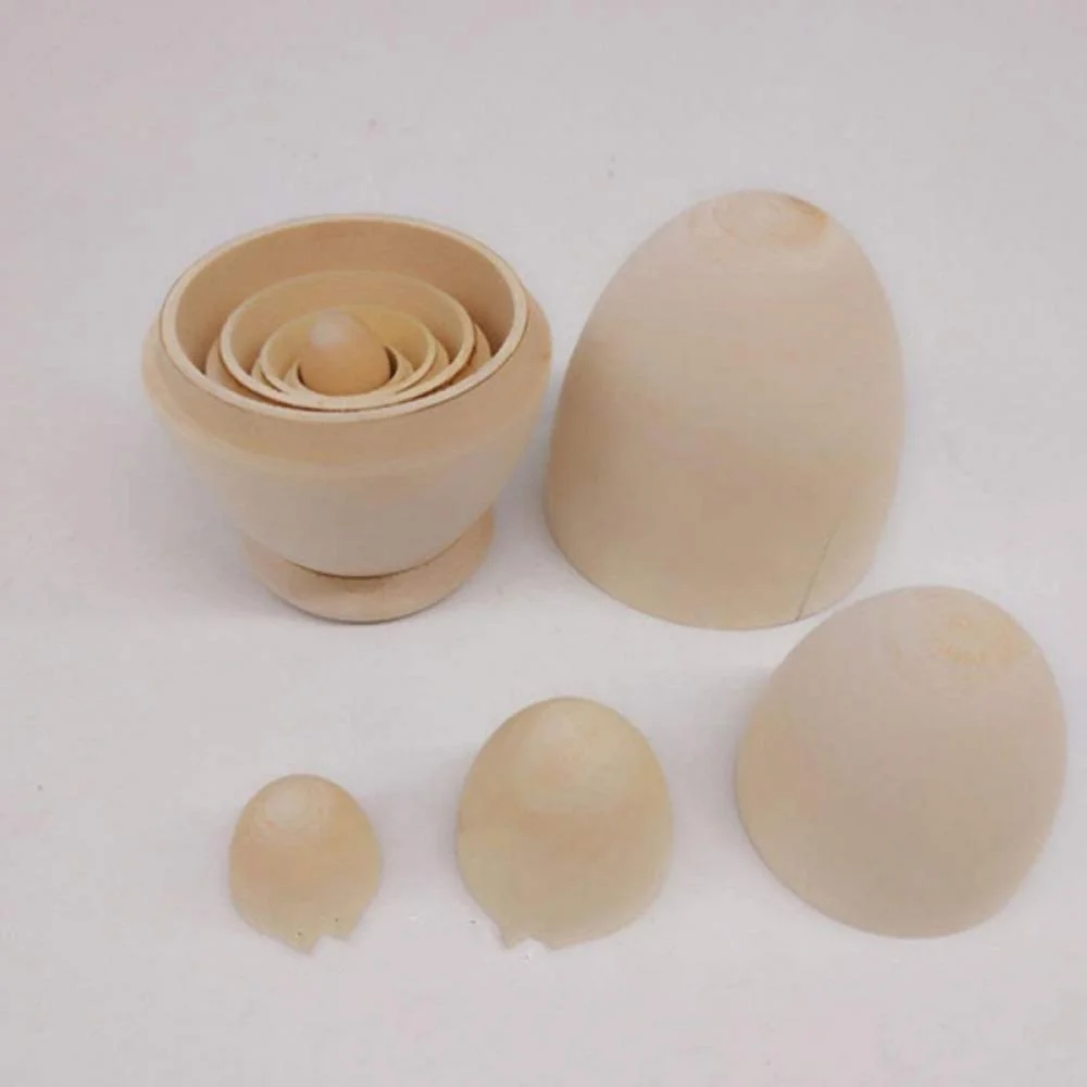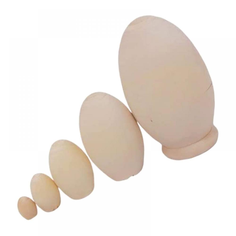 Unpainted Blank Wooden Egg Shape Russian Nesting Dolls Matryoshka Dolls Set 5 Pieces for Kids Toy Birthday Home Decoration Parent-Child Time Easter Egg