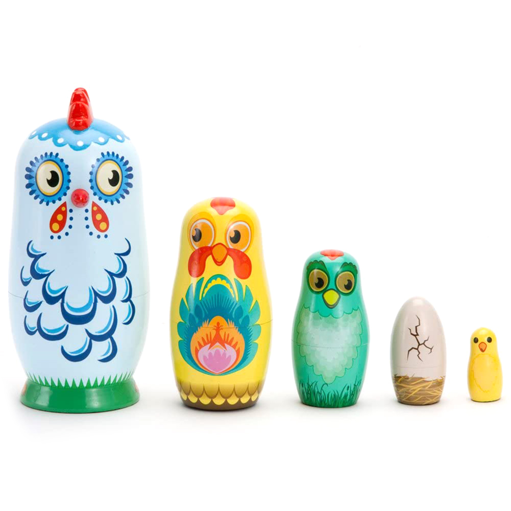 HEVIRGO 5Pcs/Set Russian Animal Chicken Nesting Dolls Matryoshka Kids Toy Home Decor