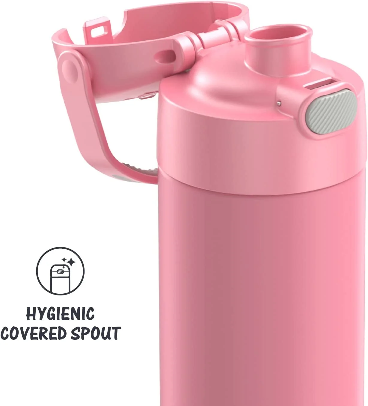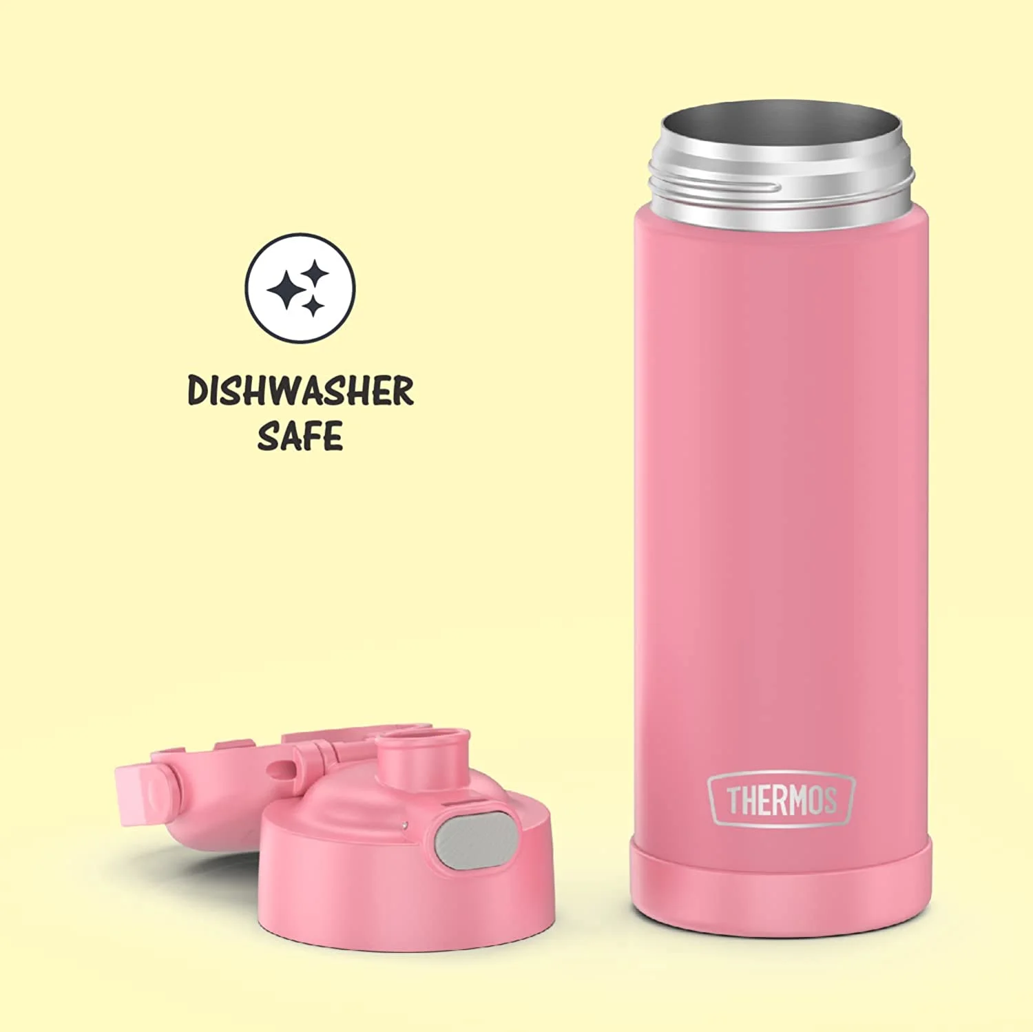 THERMOS FUNTAINER 16 Ounce Stainless Steel Vacuum Insulated Bottle with Wide Spout Lid, Pink