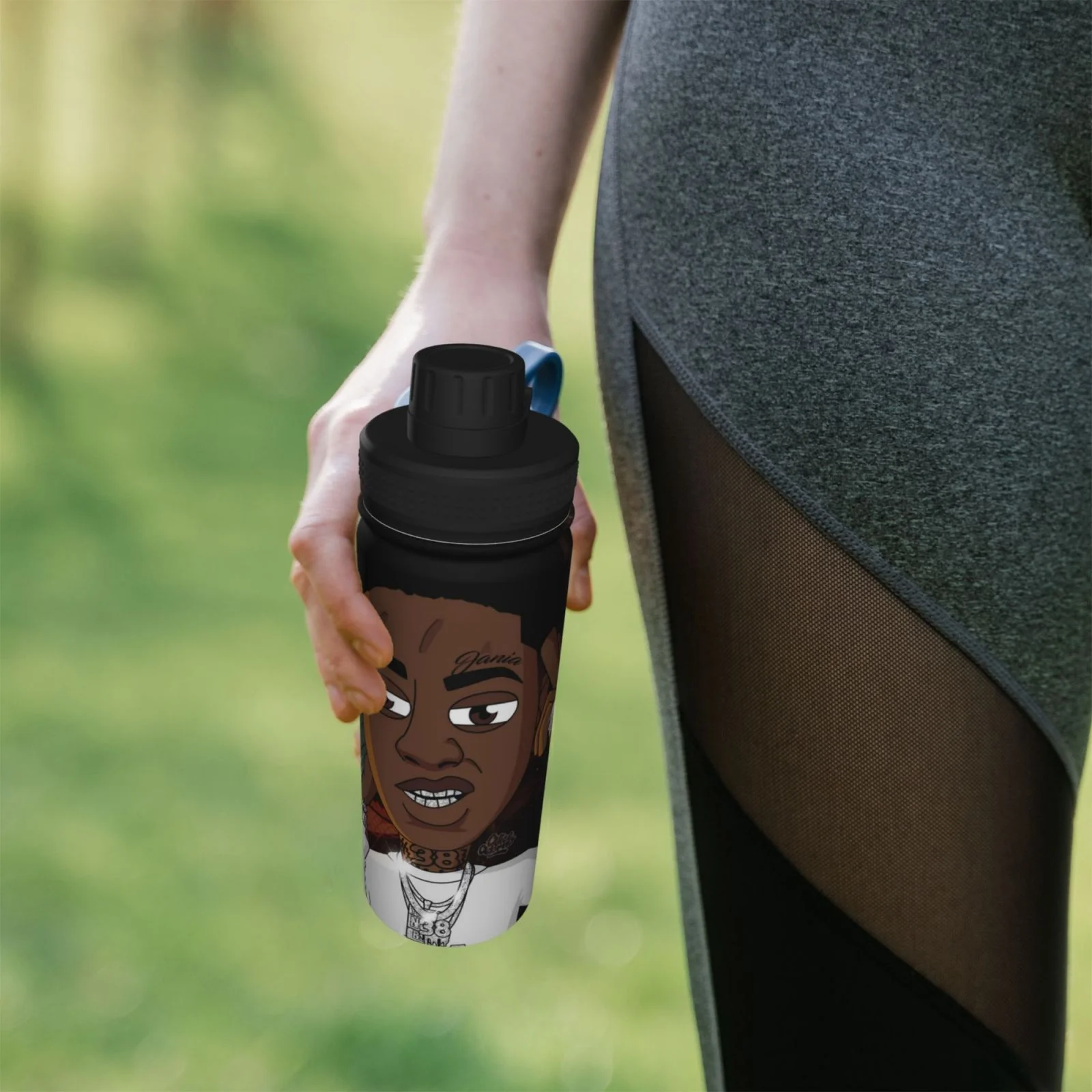 Atom Symbol glowing on black bacground 21 oz Sports Water Bottle wb-24256-1