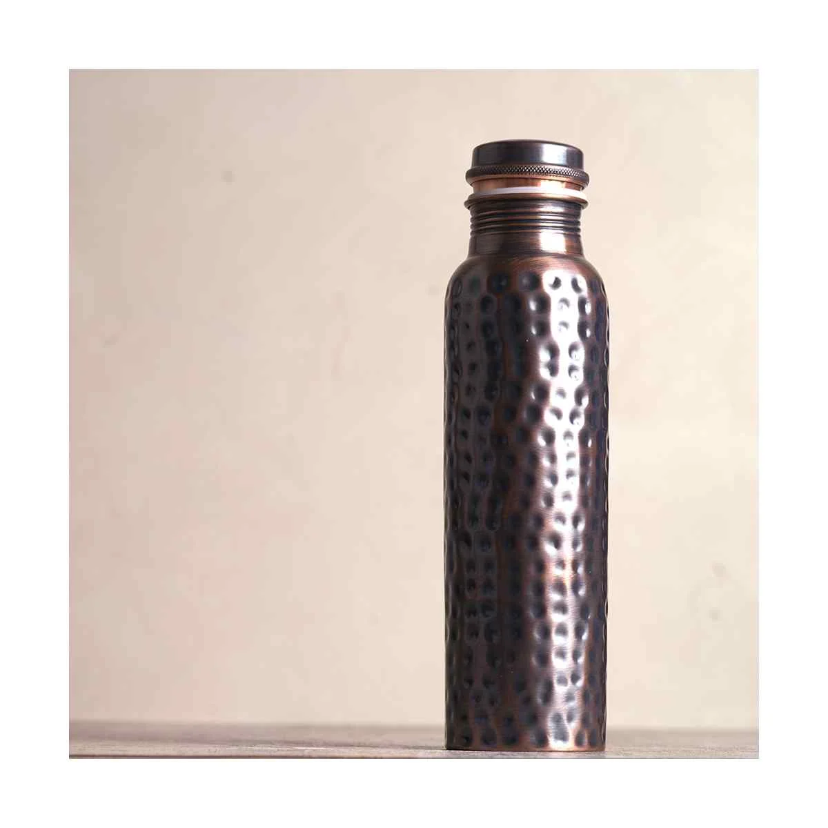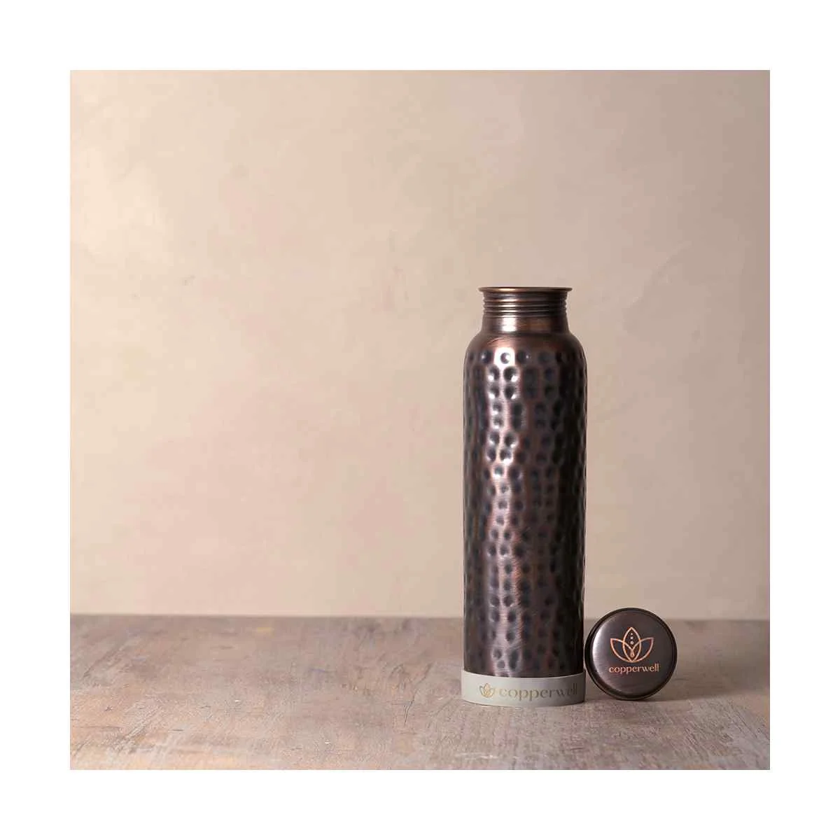 Copperwell Copper Water Bottle Phantom Black Hammered Copper Bottle (34oz)