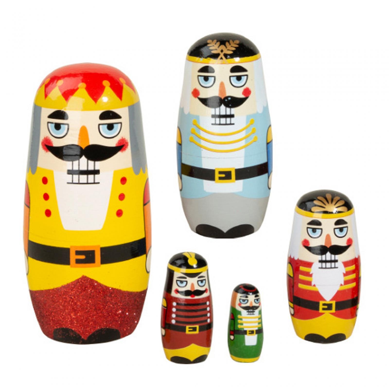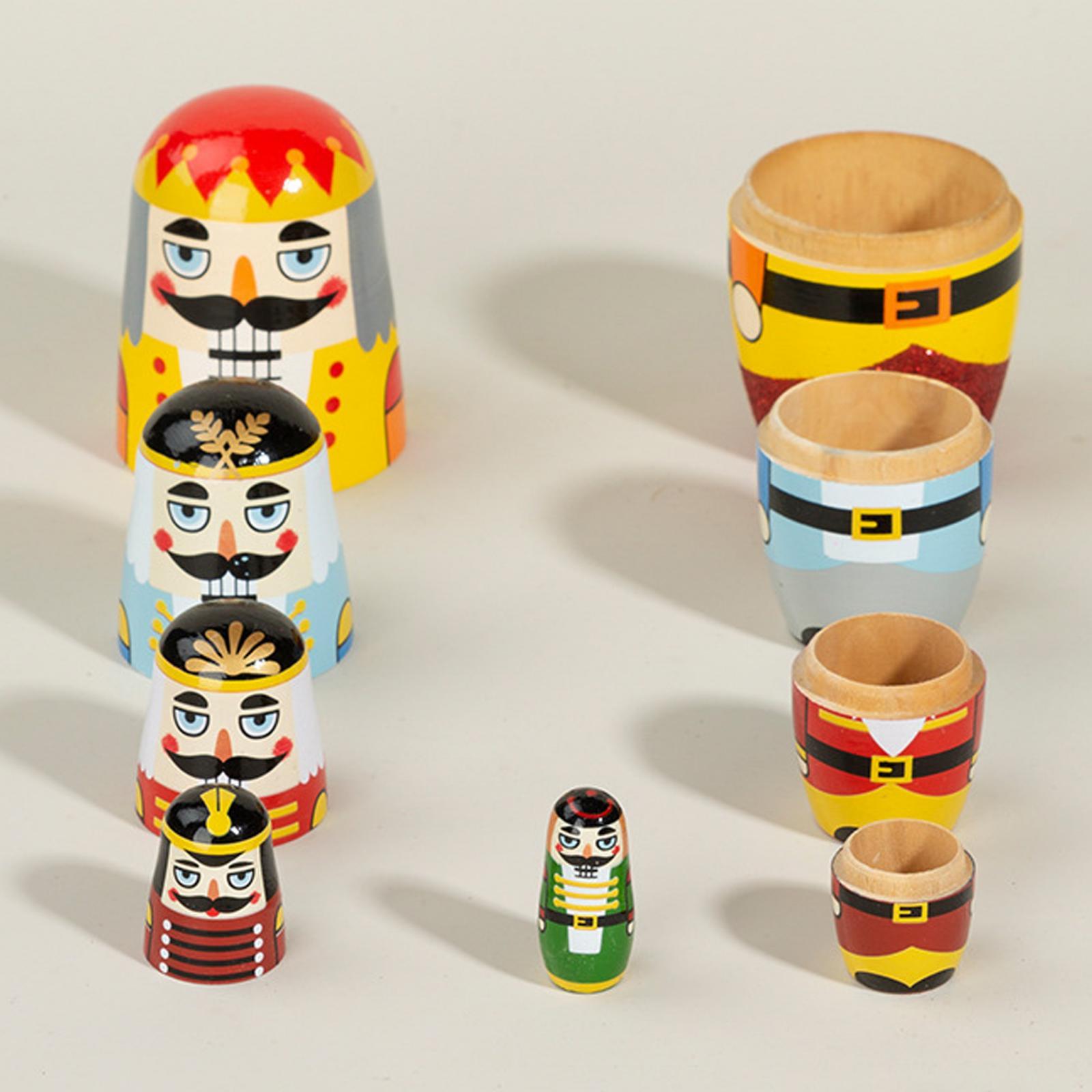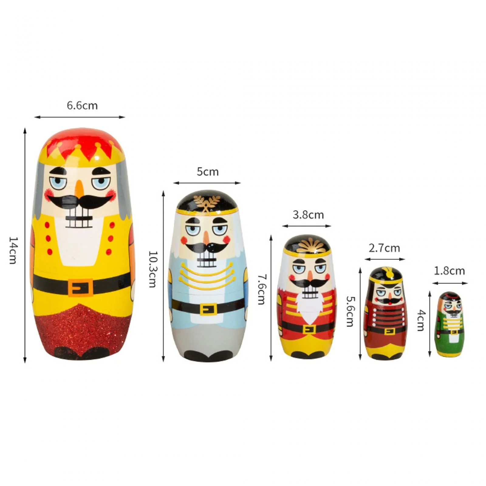 5 Pieces Nutcracker Wooden Matryoshka Dolls Cute Wishing Gift Crafts Traditional Nesting Doll Toy Stacking Doll Set Ornaments