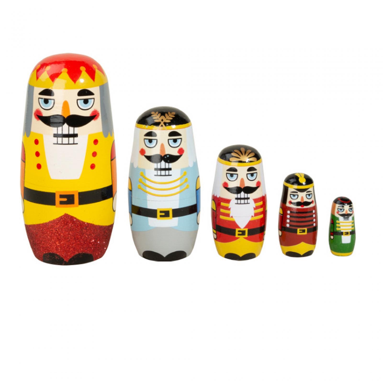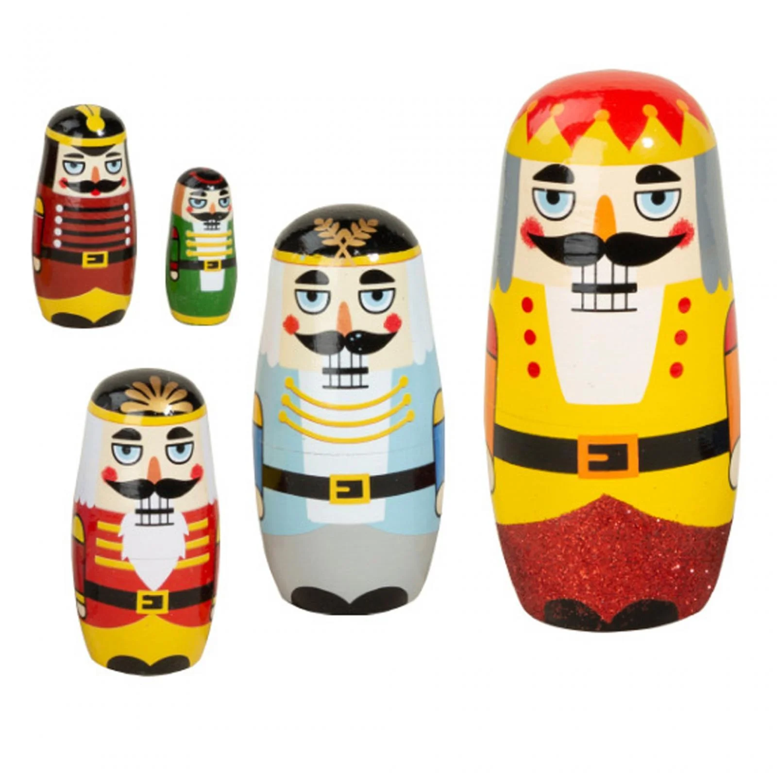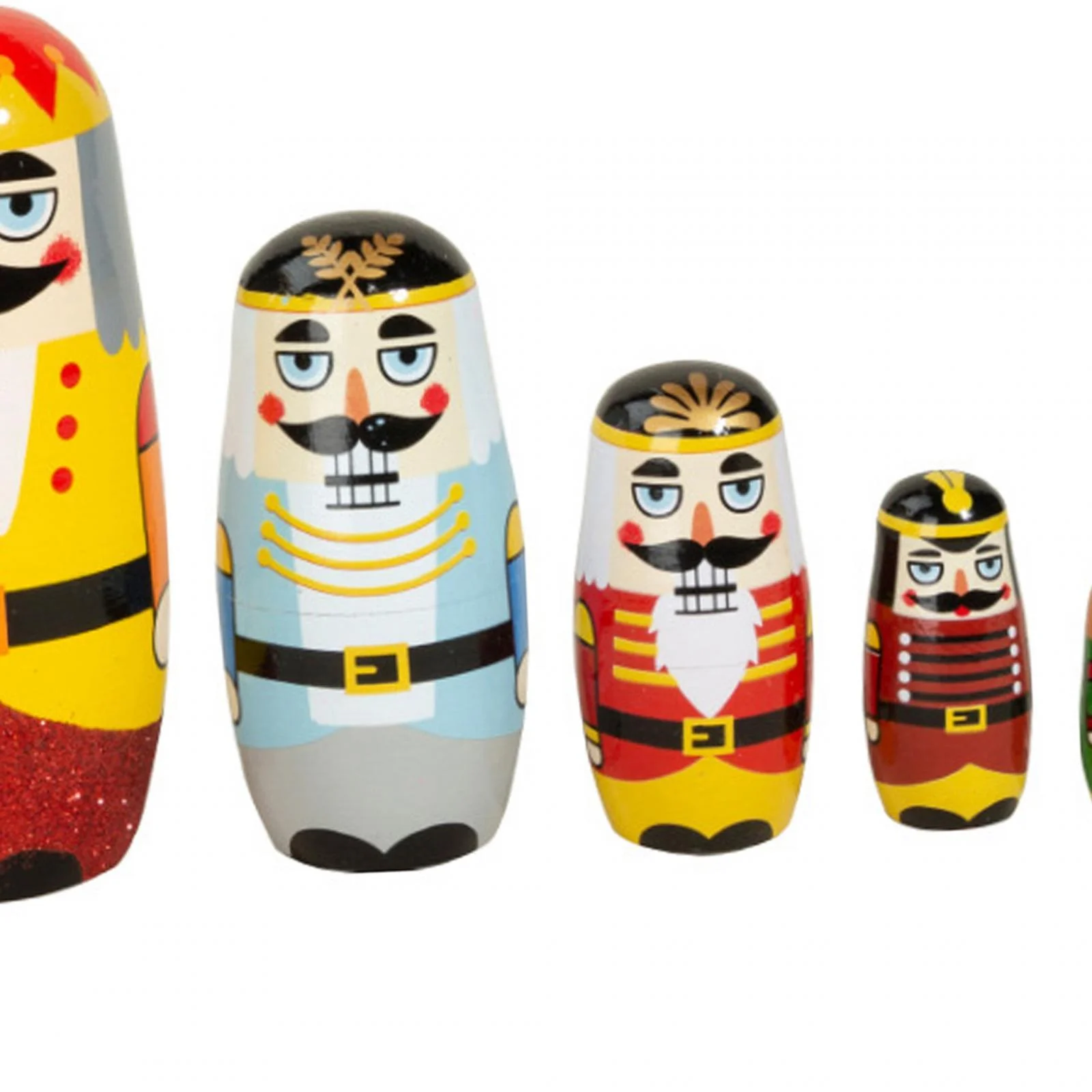 5 Pieces Nutcracker Wooden Matryoshka Dolls Cute Wishing Gift Crafts Traditional Nesting Doll Toy Stacking Doll Set Ornaments