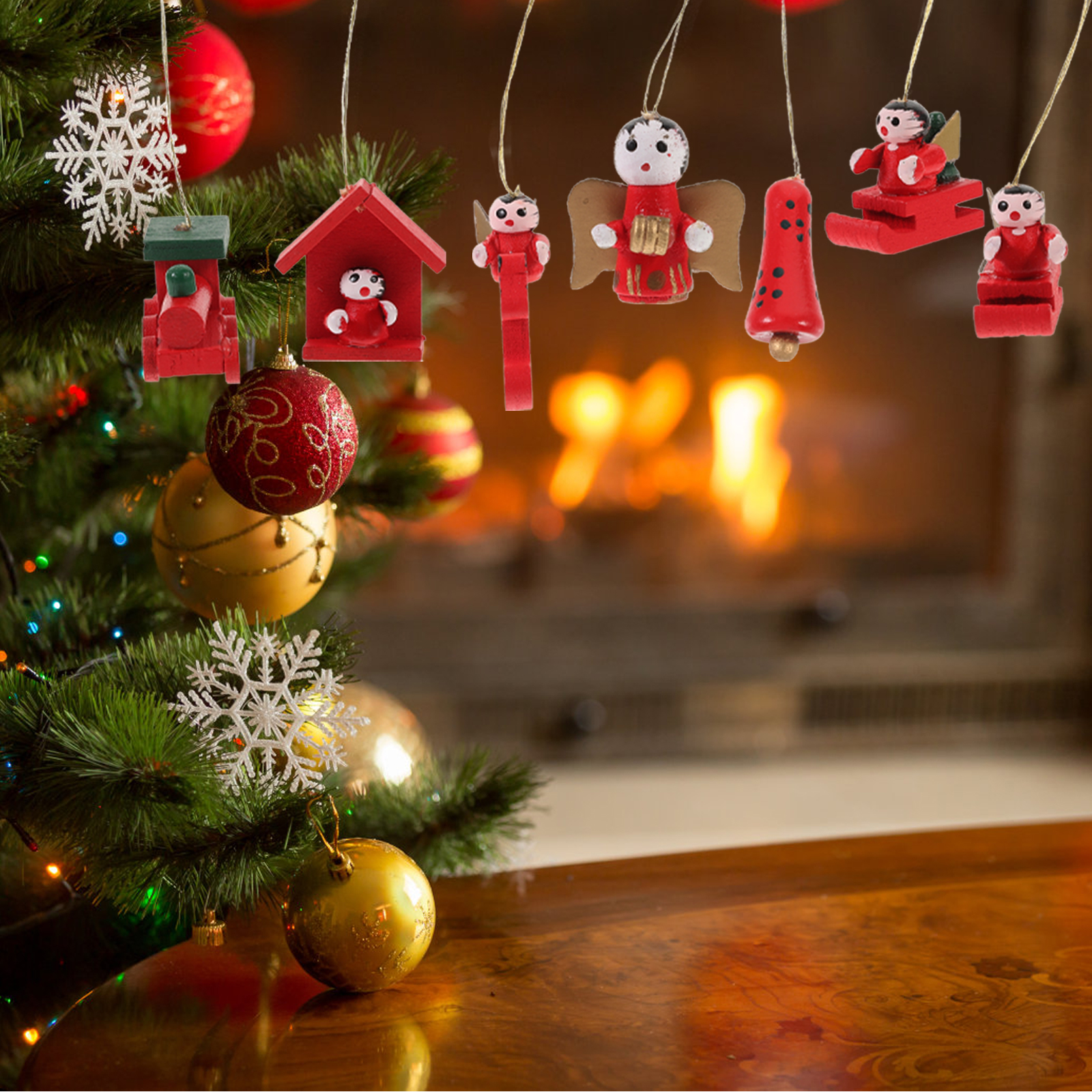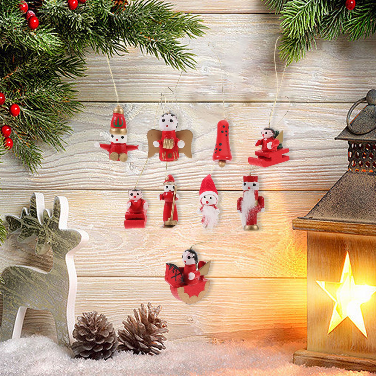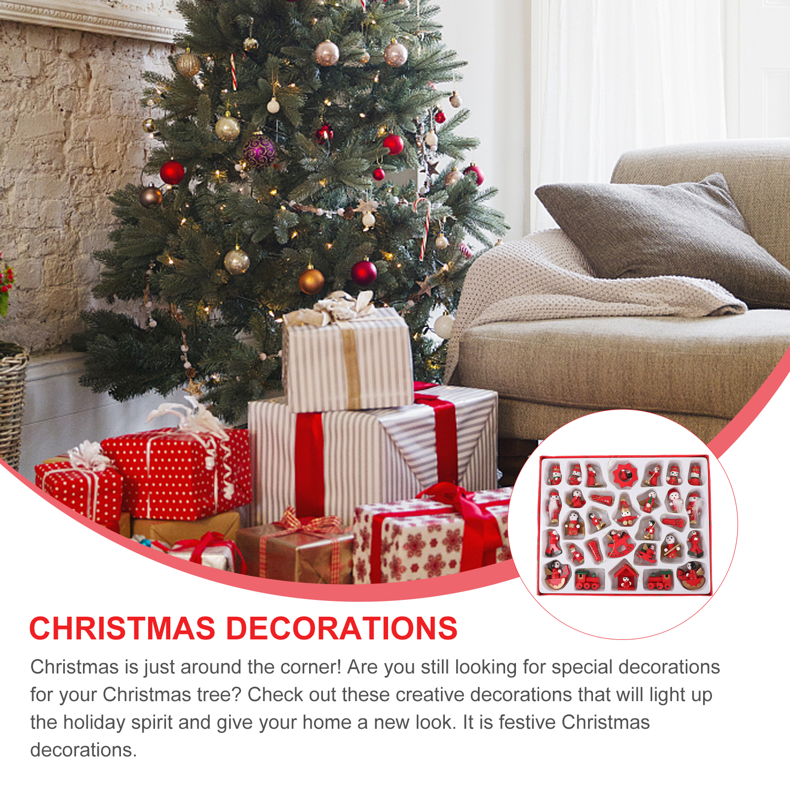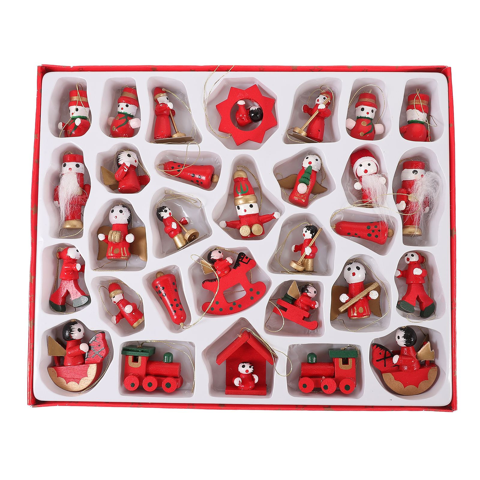 30 Pcs Wooden Dolls Christmas Decor Decoration for Tree Gift Box Set The Miniatures Crafts Decorations