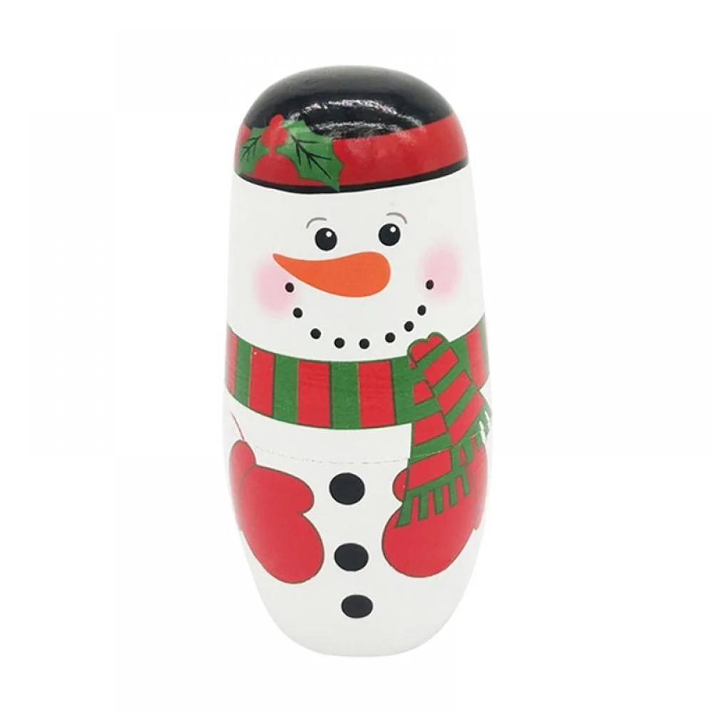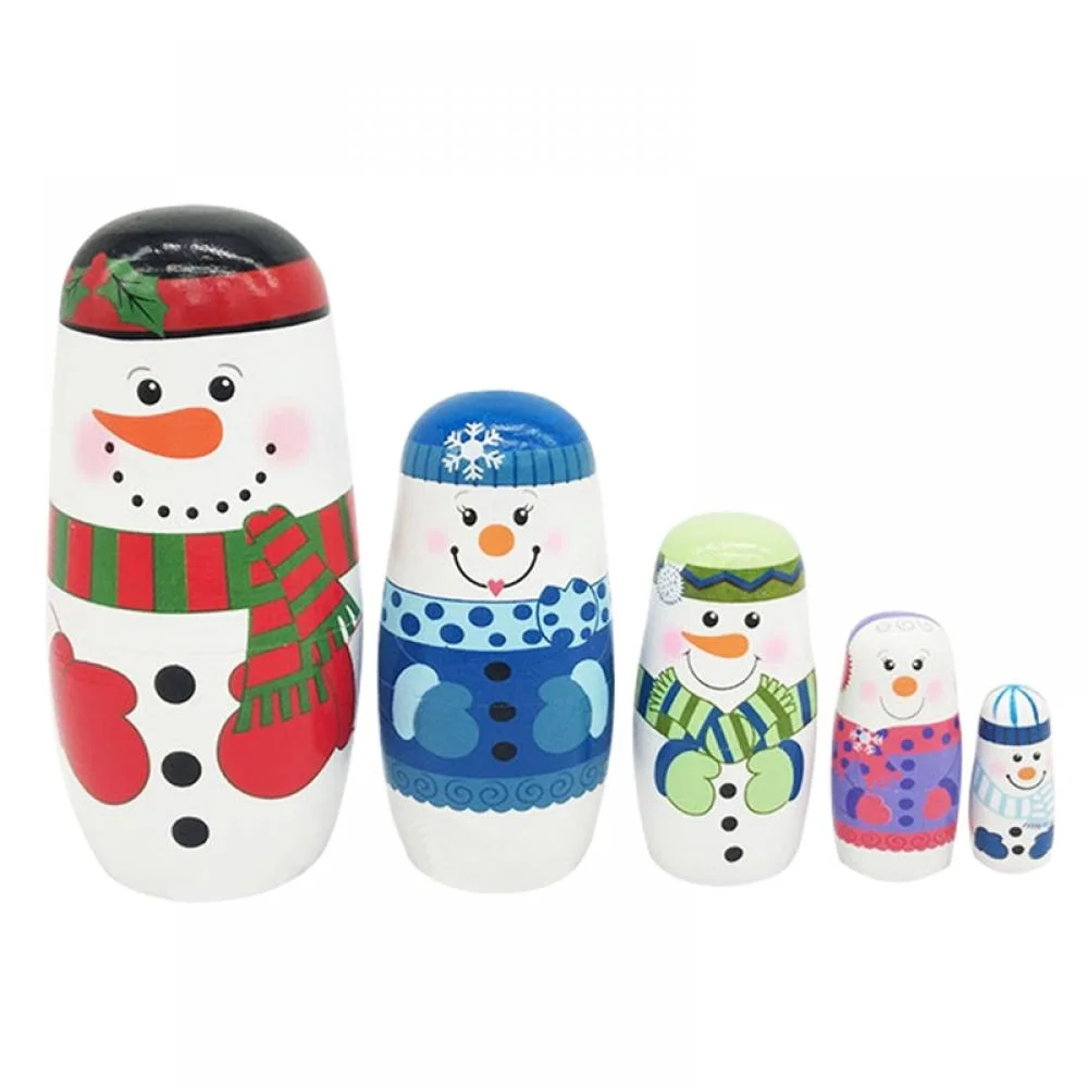 5Pcs Cartoon Snowman Nesting Dolls,Wooden Different Pattern Small Snowman Handmade Matryoshka Crafts Dolls for Christmas New Year Party Home Ornaments Holiday Decoration-5.5 inch Stacking Doll Set