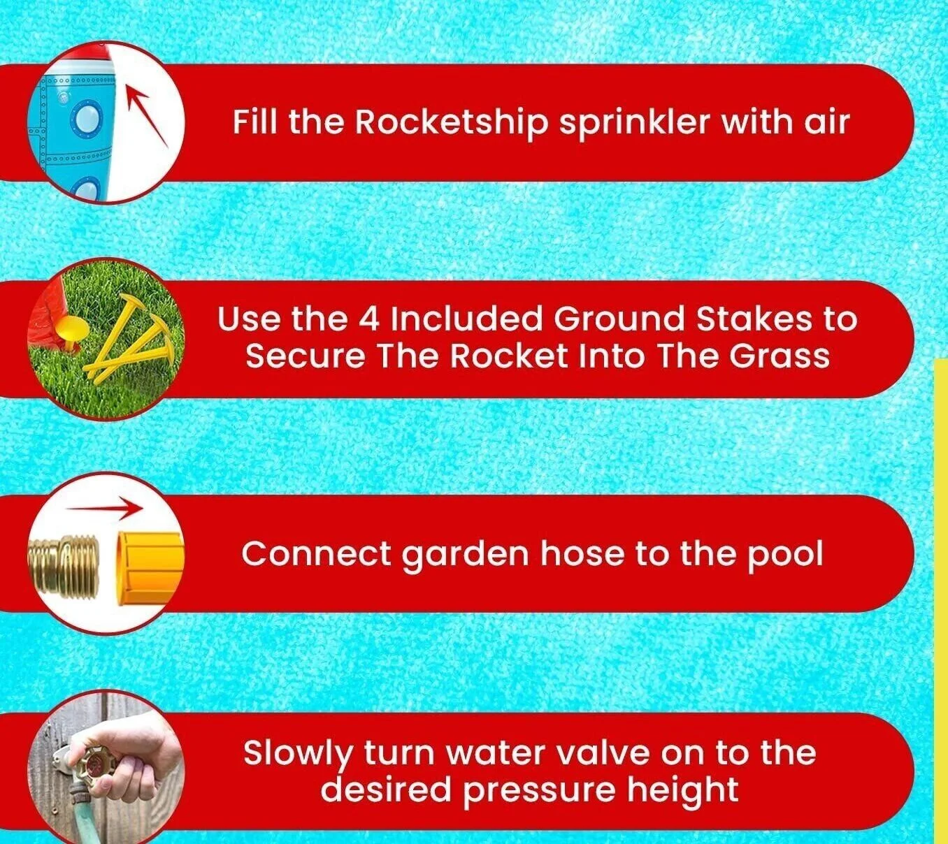 Inflatable Rocket Ship Water Sprinkler Toy Attach to Hose - Water Pool Summer Toy for Kids- Outdoor Water Play