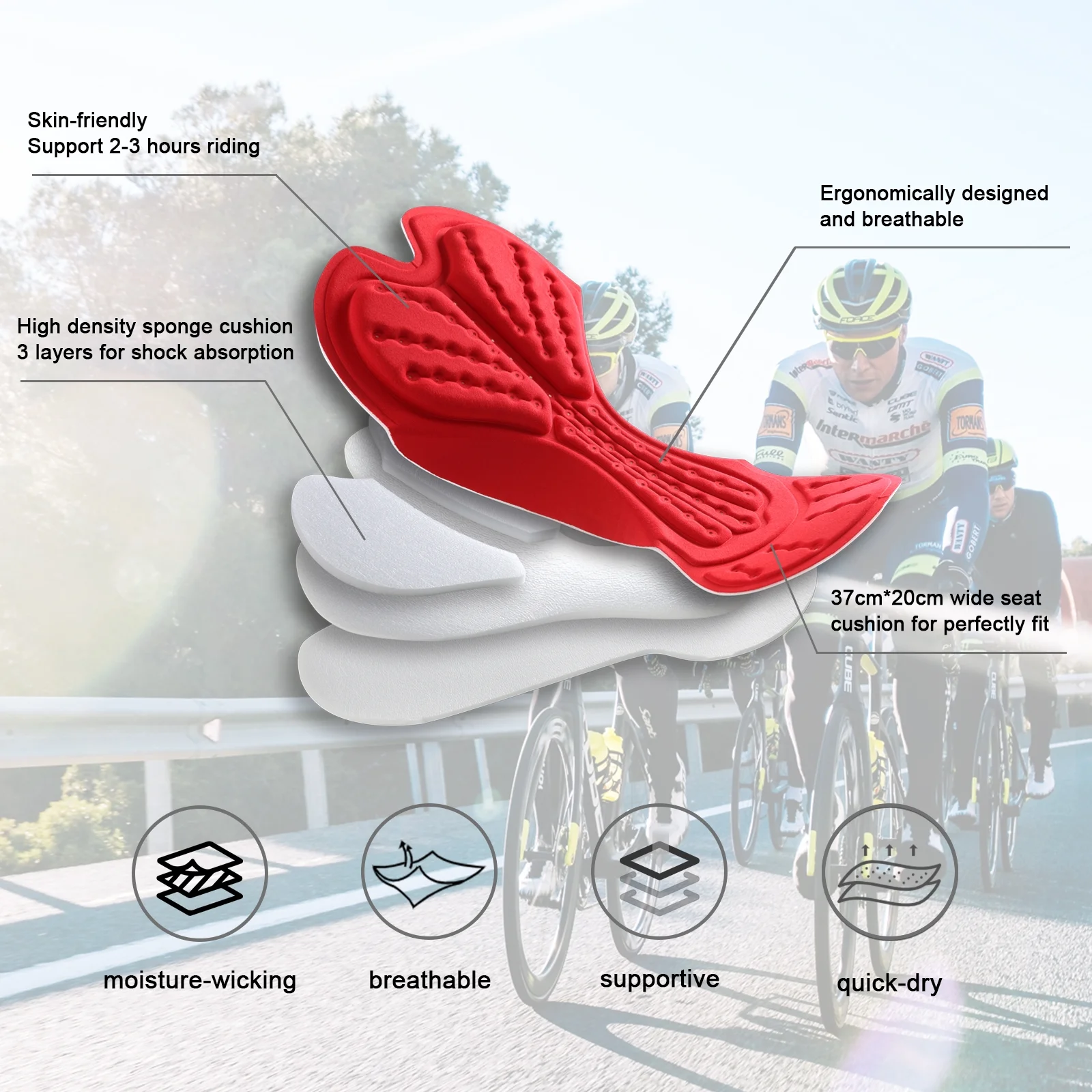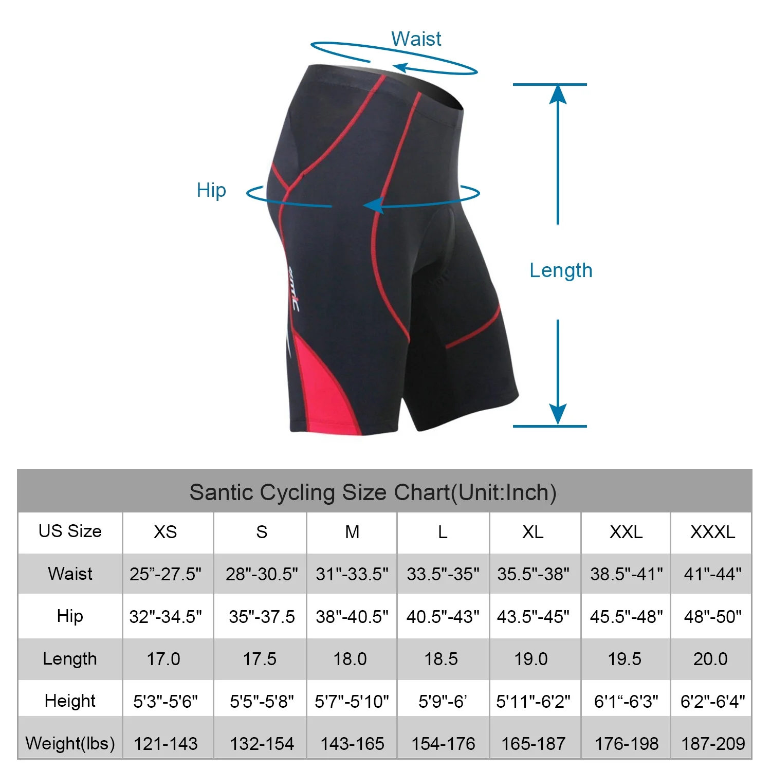 Santic Cycling Shorts Padded for Mens Bicycle Riding Pants Bike Shorts Cycle Tights Red 2XL