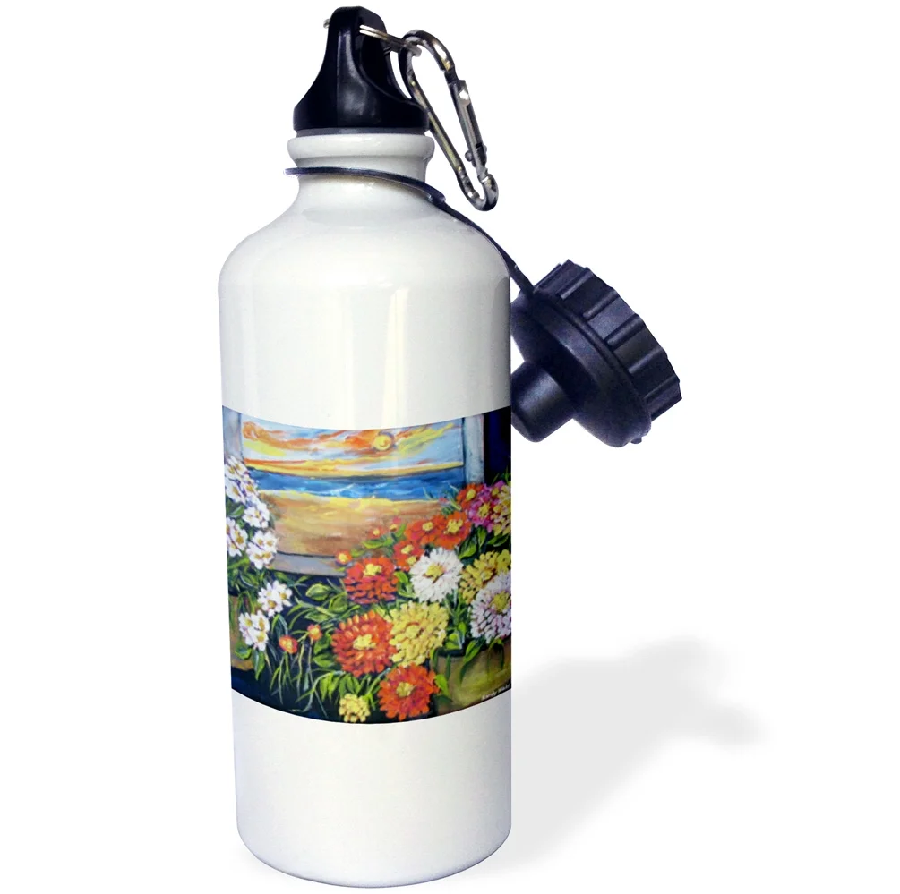 3dRose Still life Sunburst, flowers with beach scene, Sports Water Bottle, 21oz