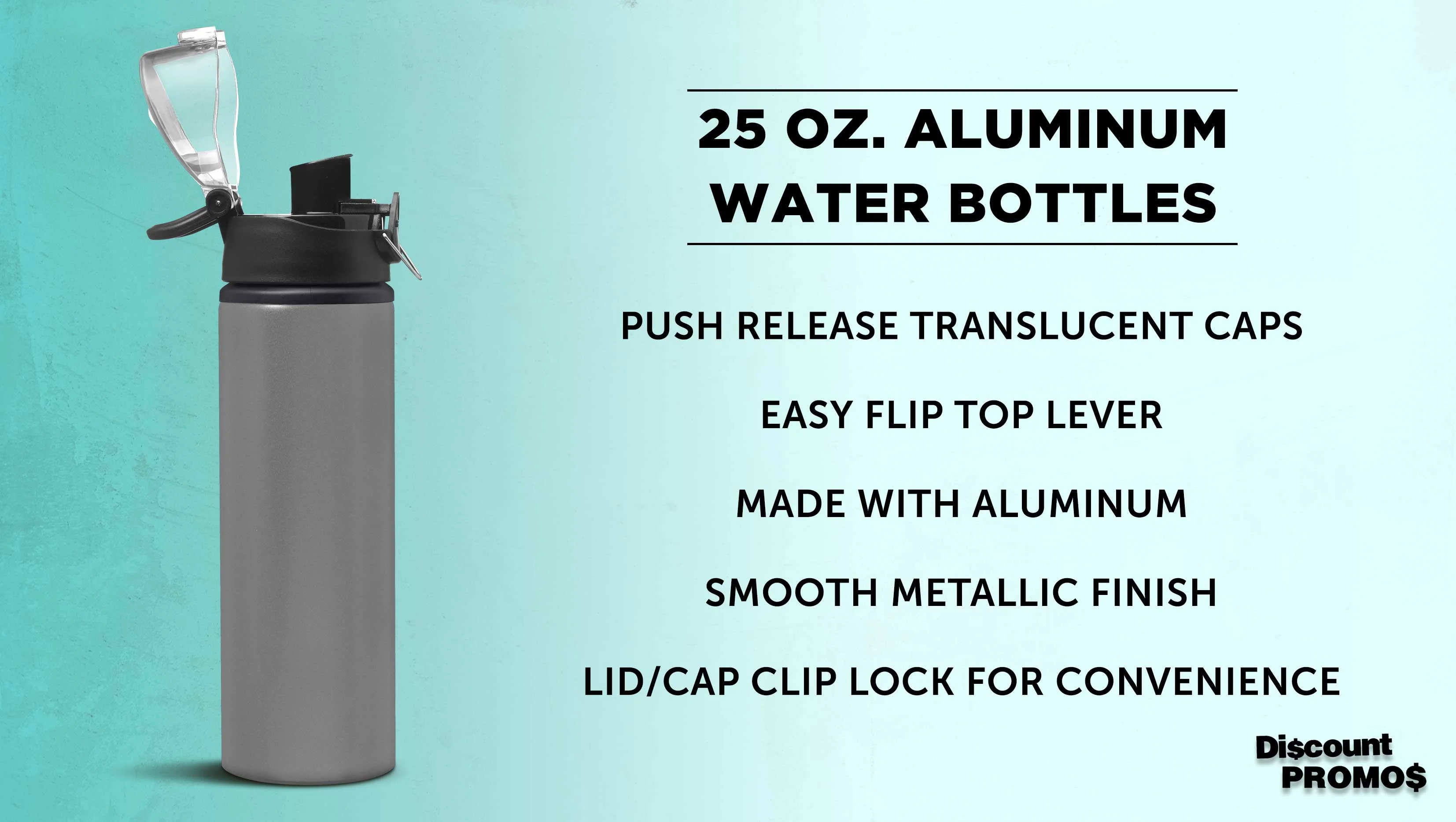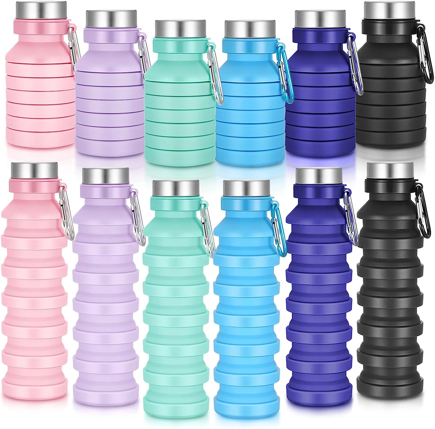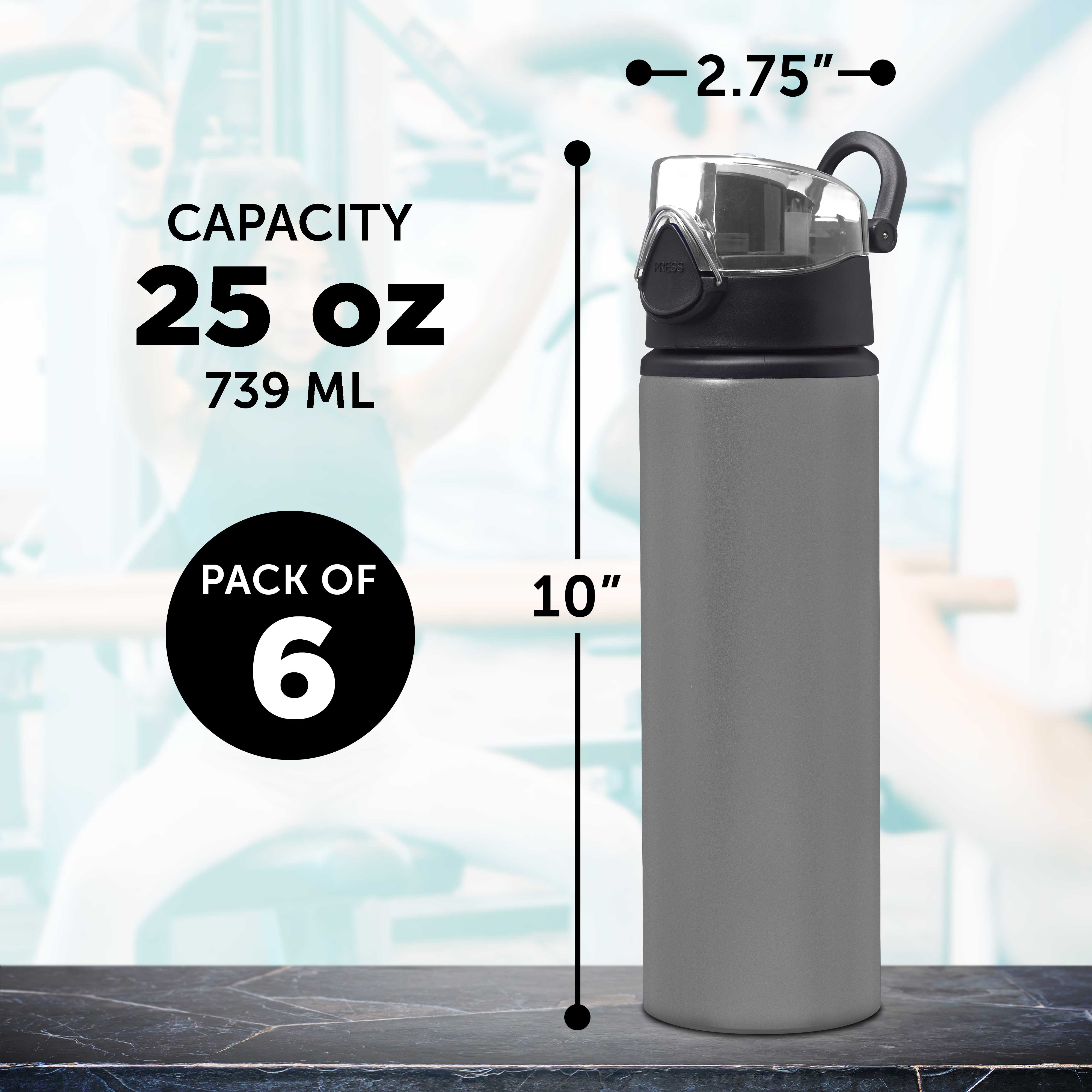 Aluminum Water Bottles with Carabiner in Bulk, 6 Pack, 25 oz., Reusable, Refillable, Silver
