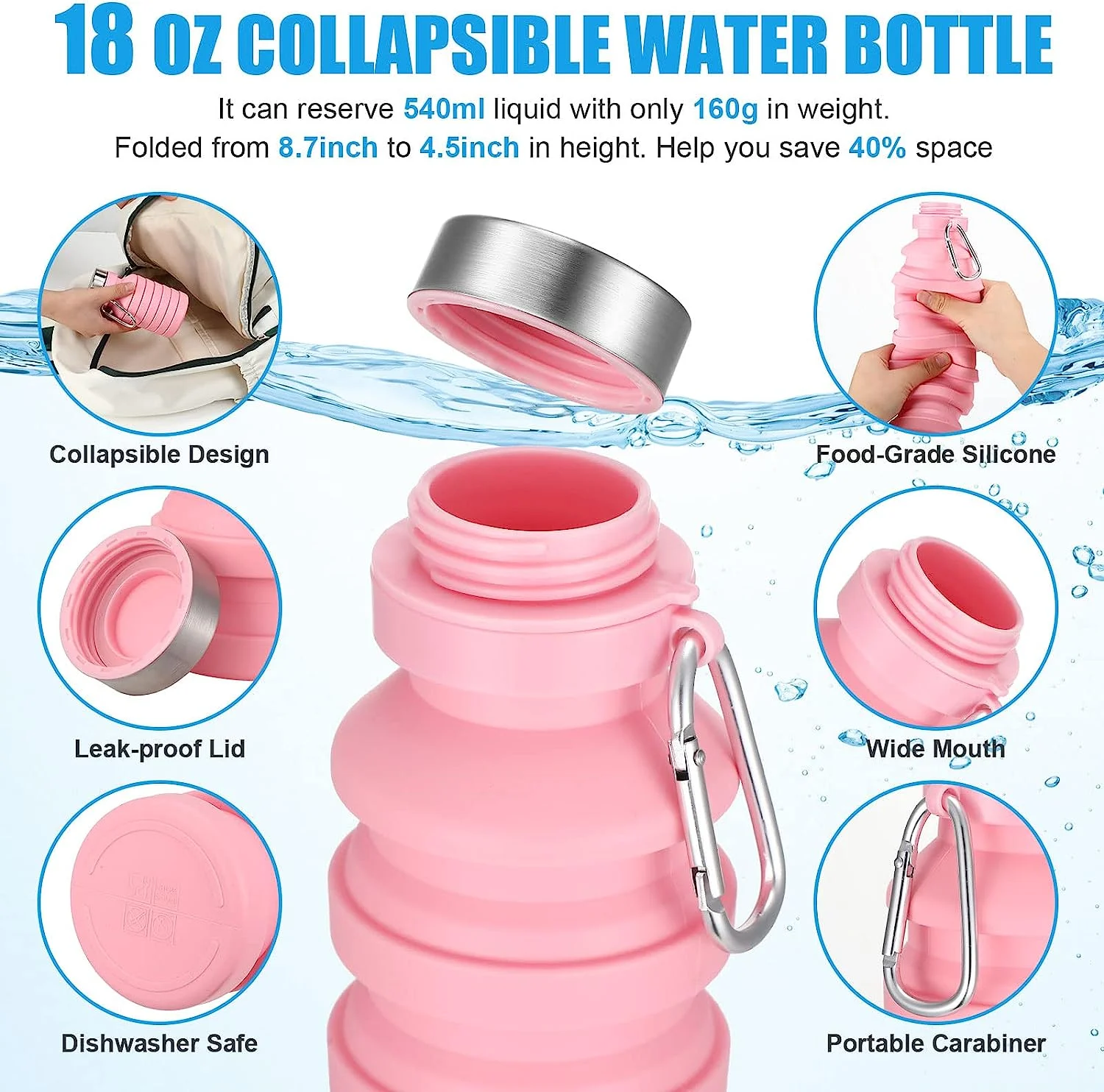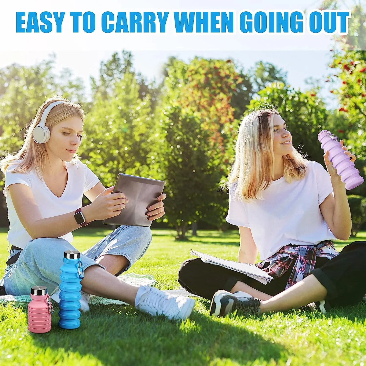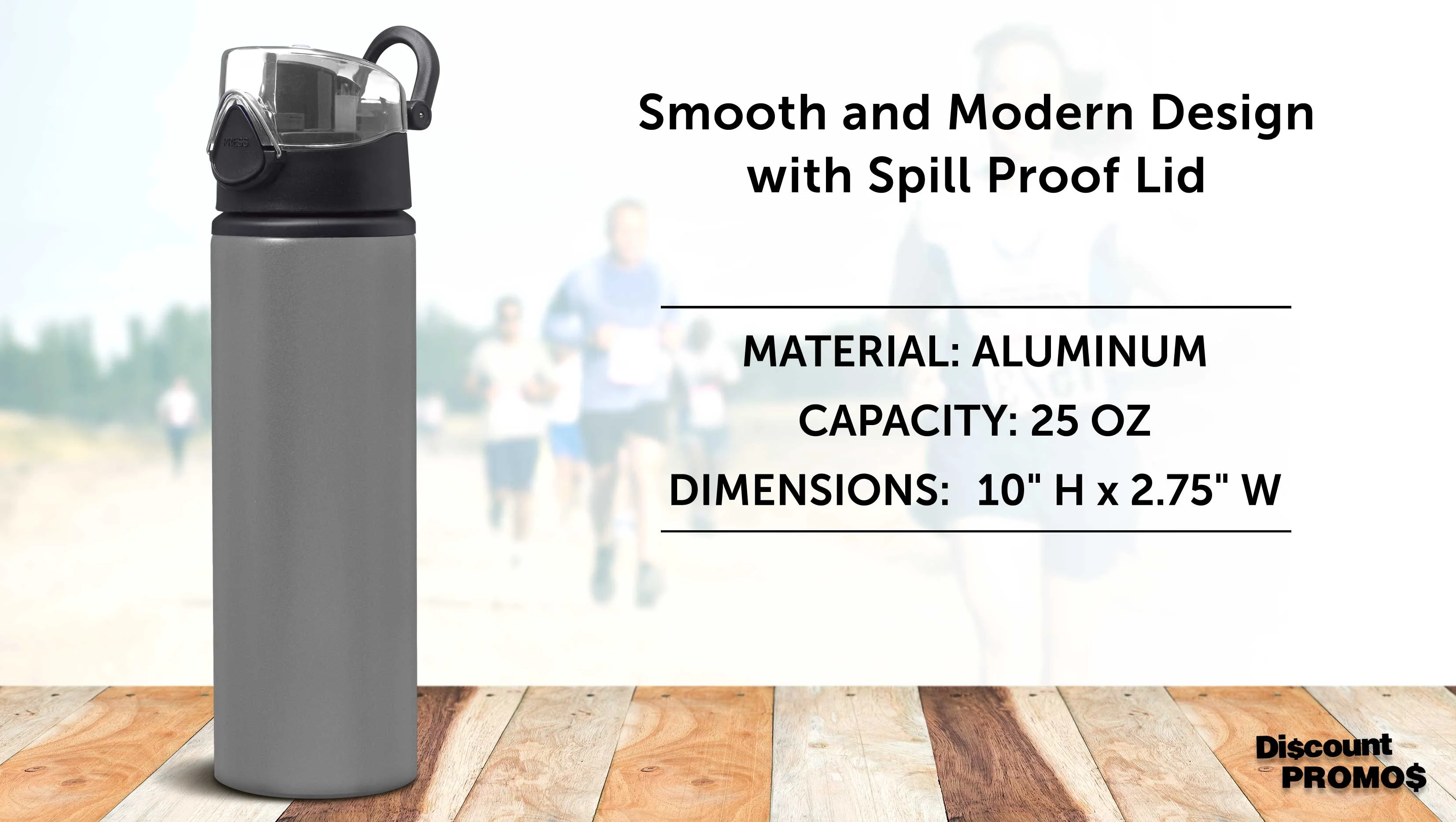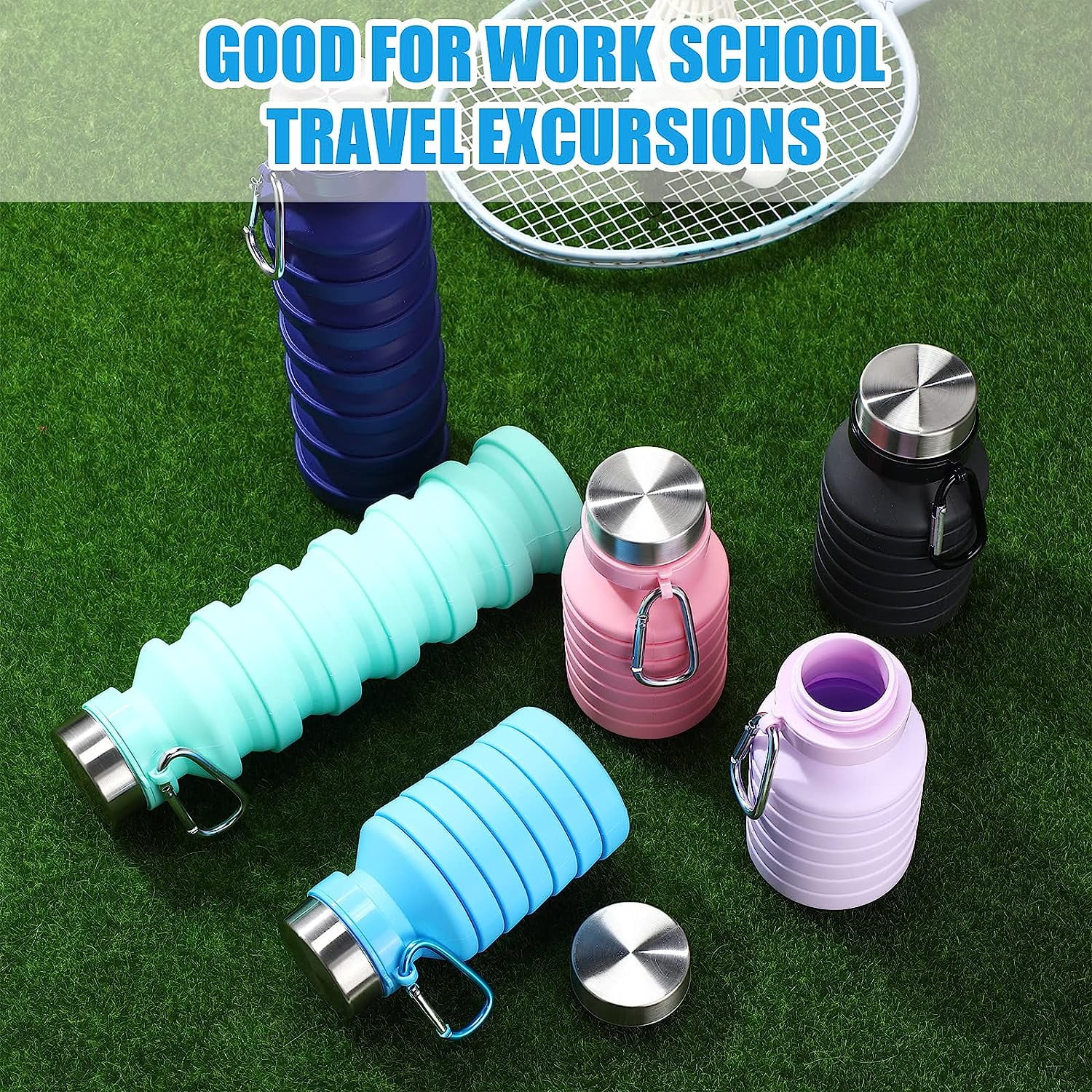 Aluminum Water Bottles with Carabiner in Bulk, 6 Pack, 25 oz., Reusable, Refillable, Silver