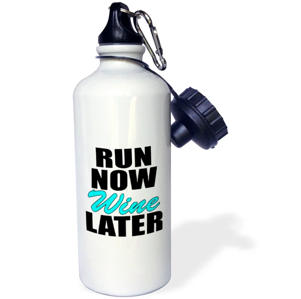 3dRose sweat now, wine later, black lettering on a white background - Straw Water Bottle, 21-ounce