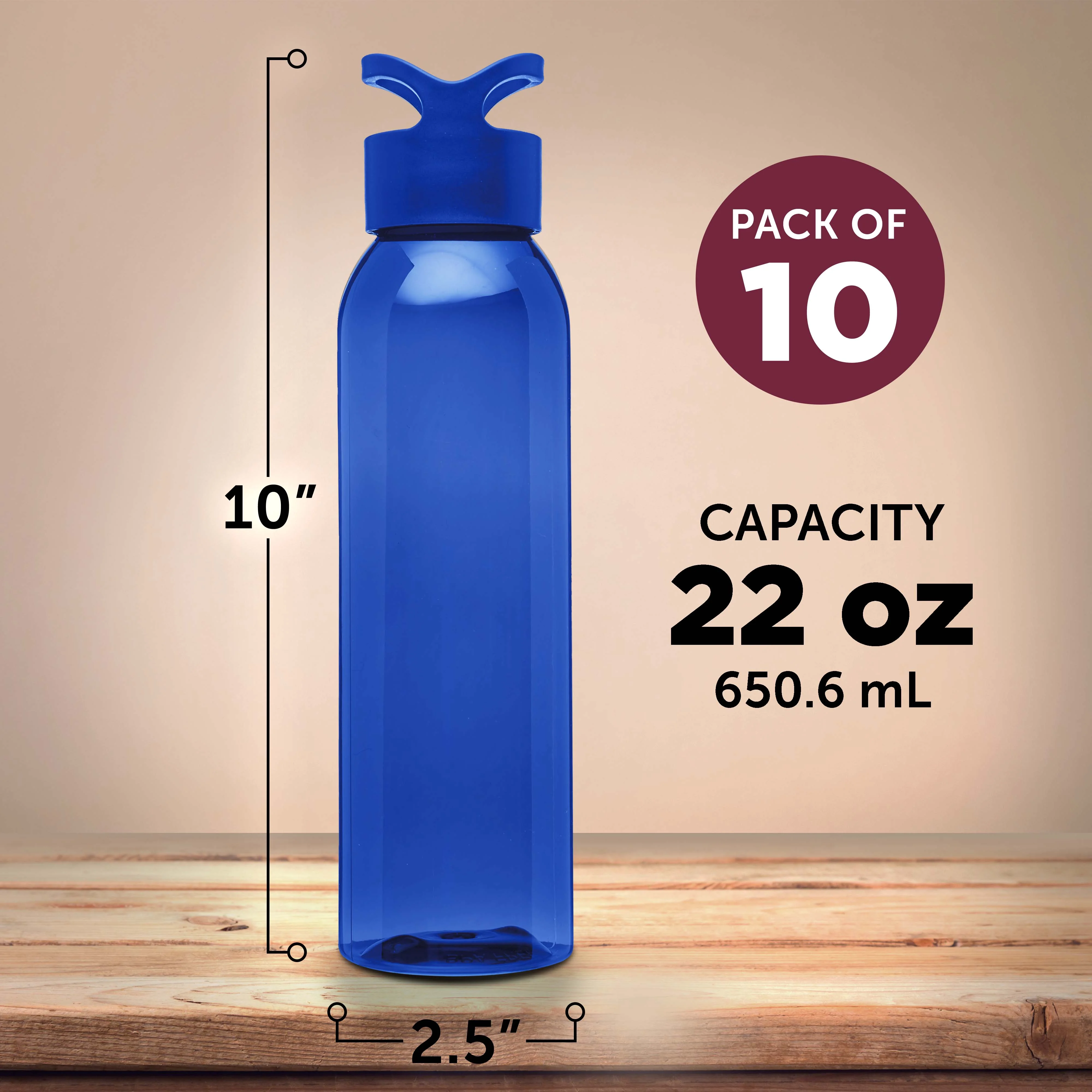 Trainer Tritan Plastic Water Bottles 22 Oz. - Set of 10 - Reusable Bulk Pack - Blue