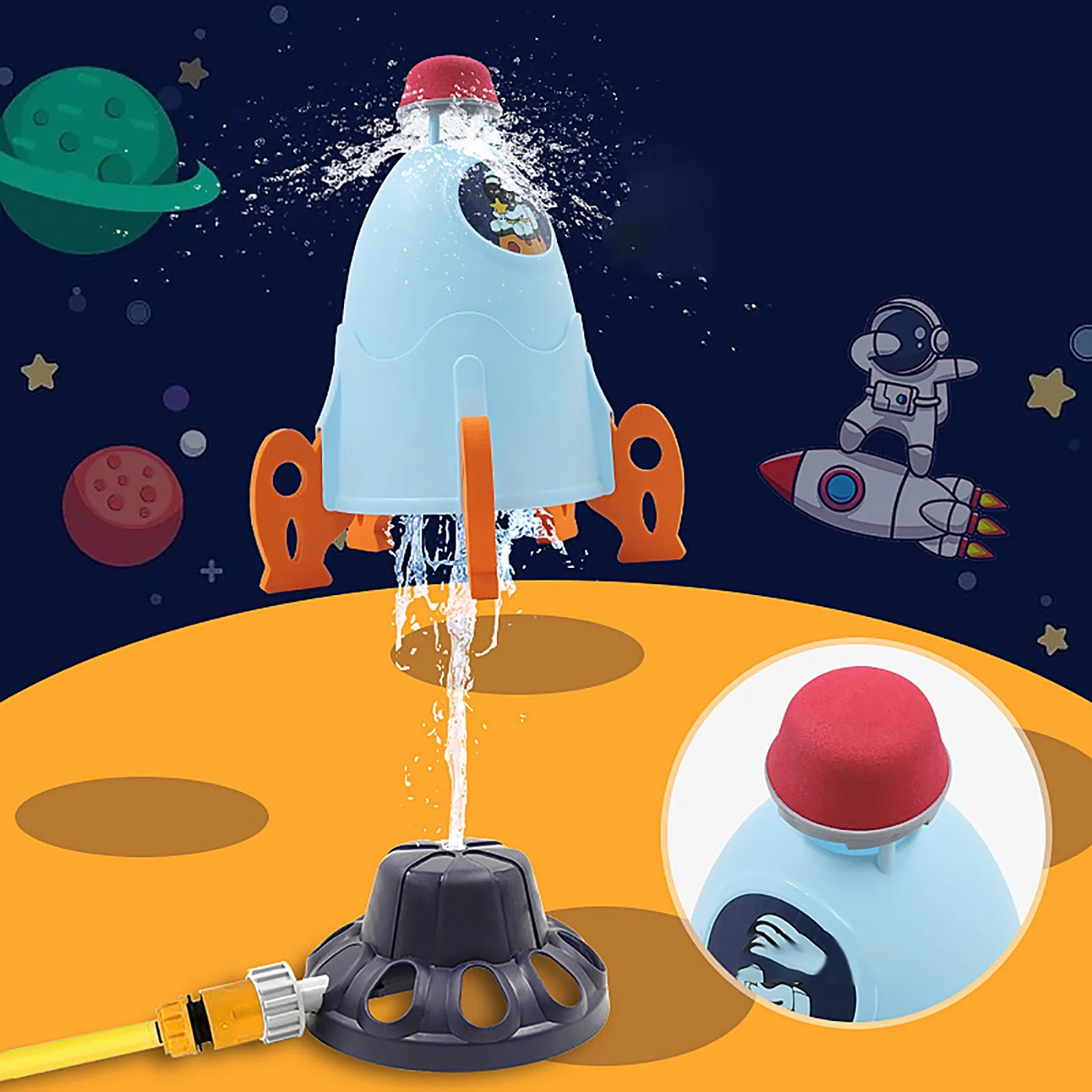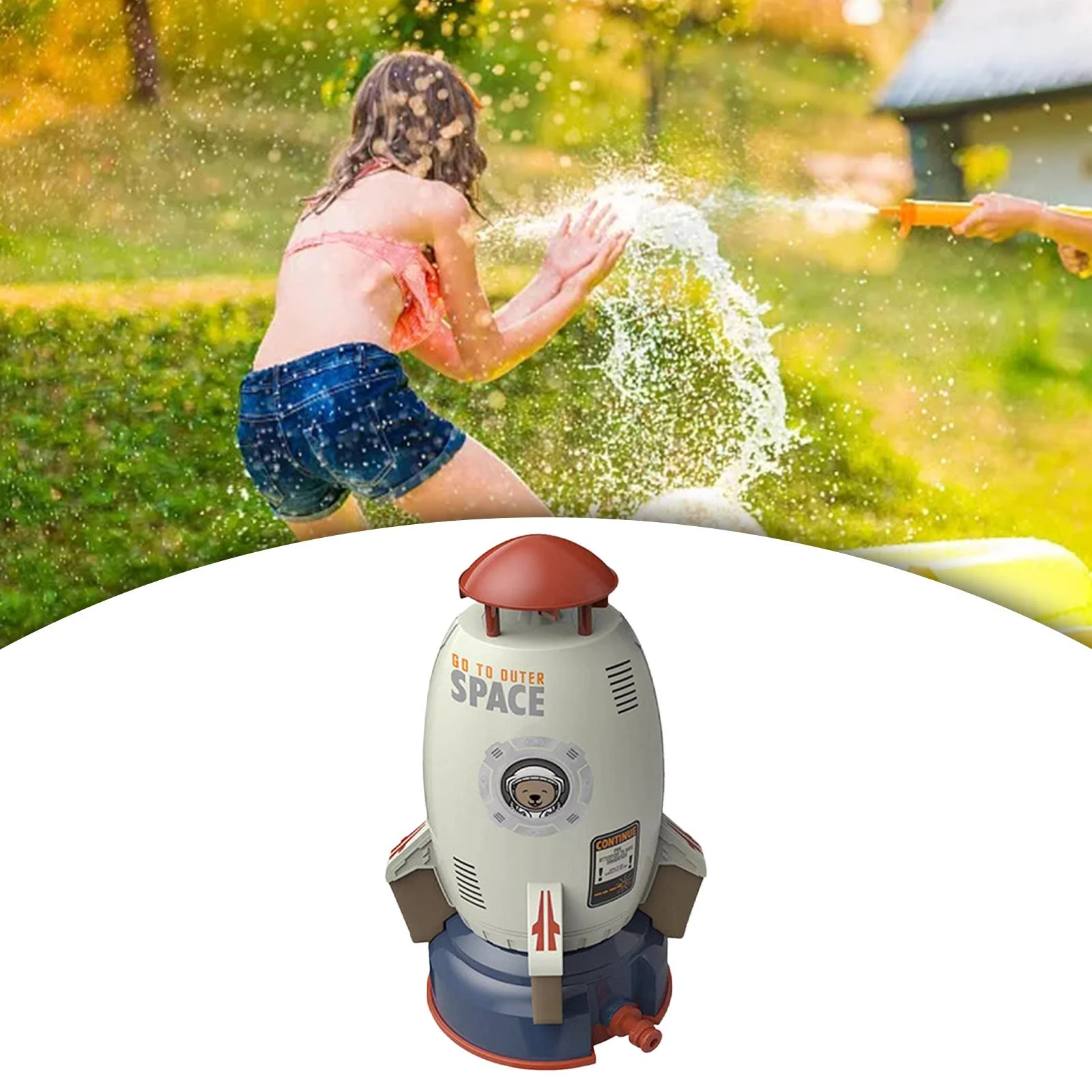 Rocket Sprinkler Toy 360 degree Rotating Water Toys for Party Favors Holiday Yard white