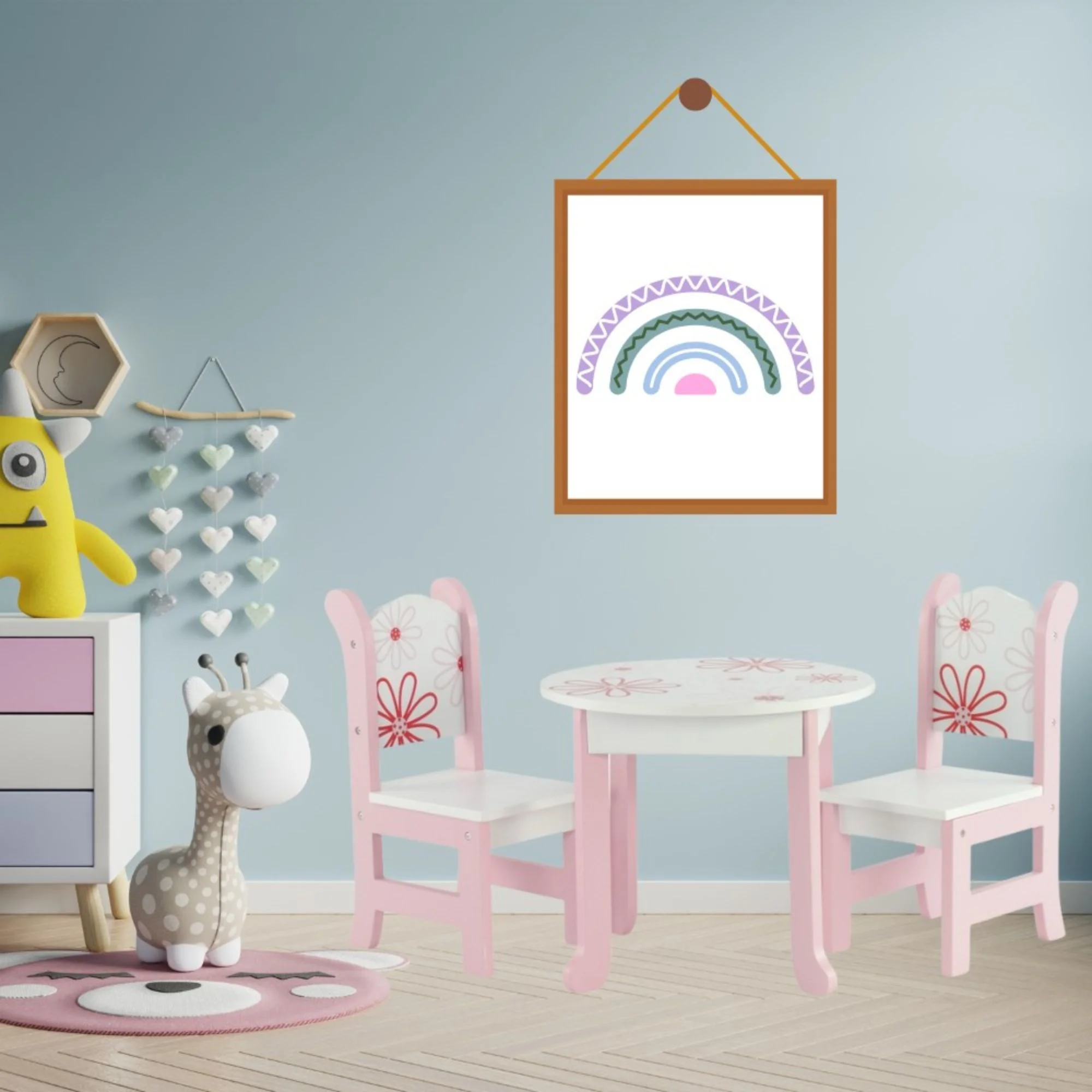 Emily Rose 18 Inch Doll Furniture & Accessories - Pink Floral Kitchen Table and 2 Chair Dining Doll Accessory Gift Set