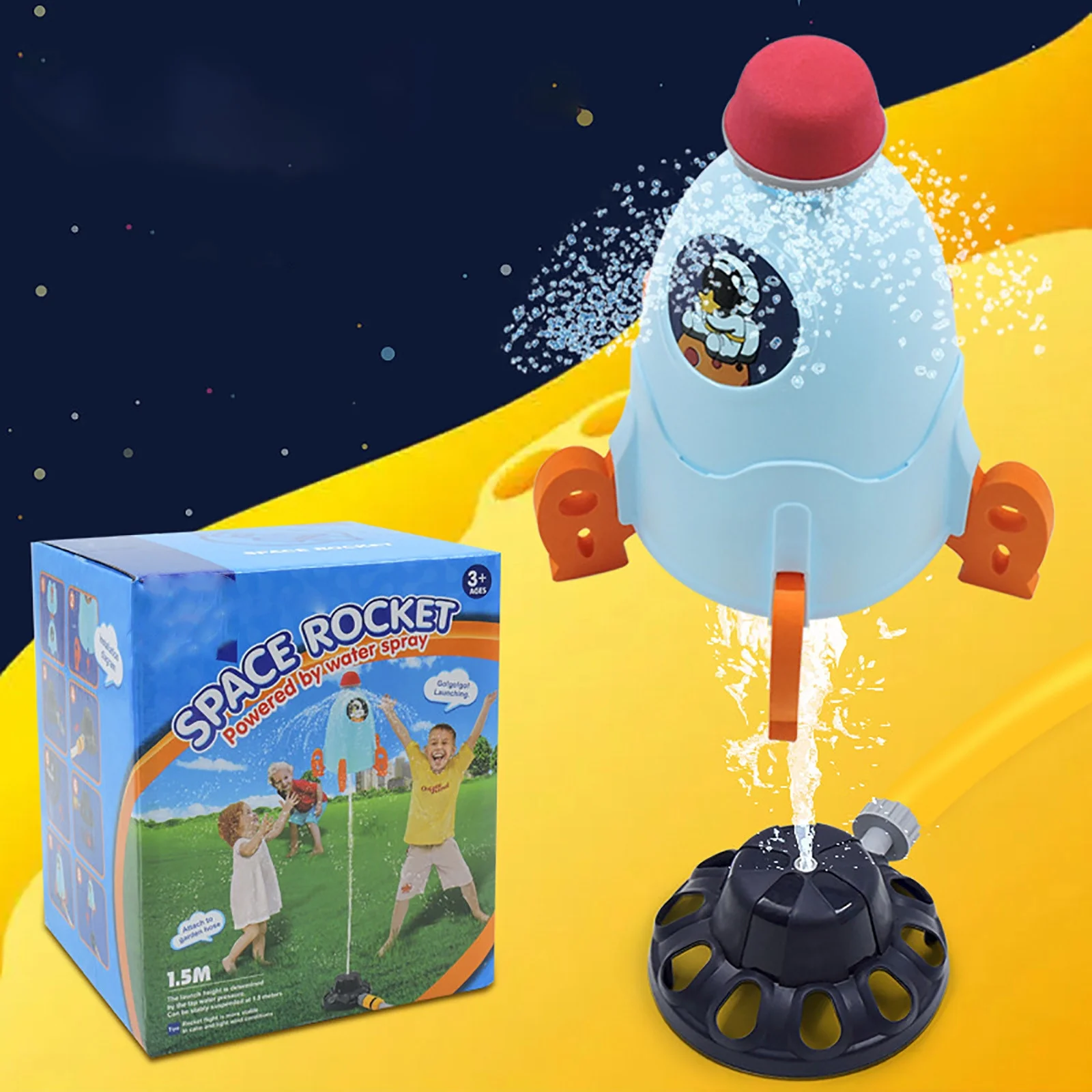 Funnytoys Rocket Sprinkler Launcher Water Toys - 3Pcs for Yard, Pool, and Garden, Summer Water Toys, Birthday Gift, Yellow