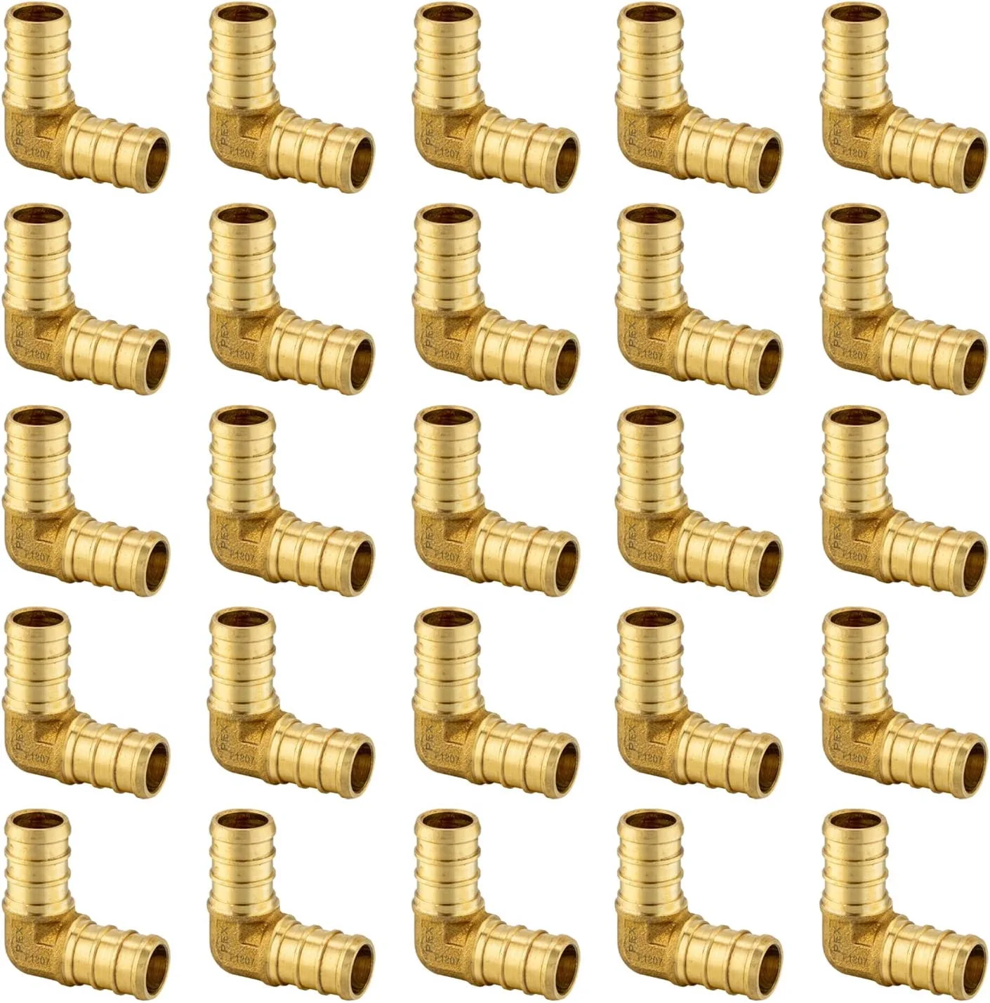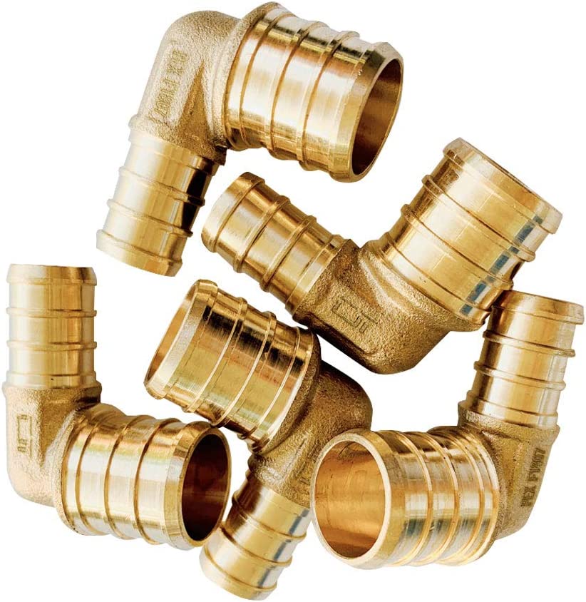 (Pack of 25) EFIELD Pex 3/4 Inch x 3/4 Inch 90 Degree Elbow Barb Brass Barb Crimp Fitting, ASTM F1807