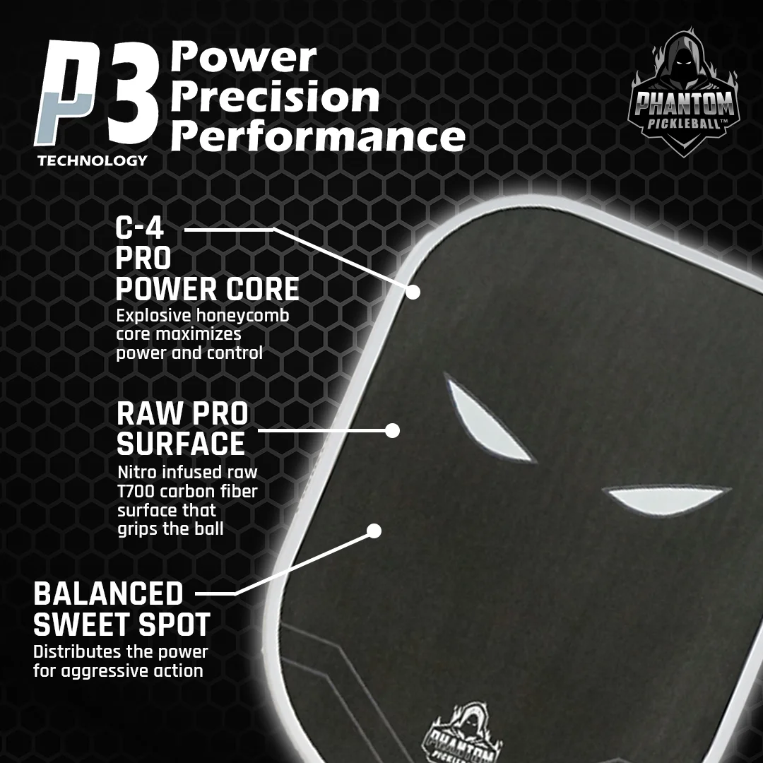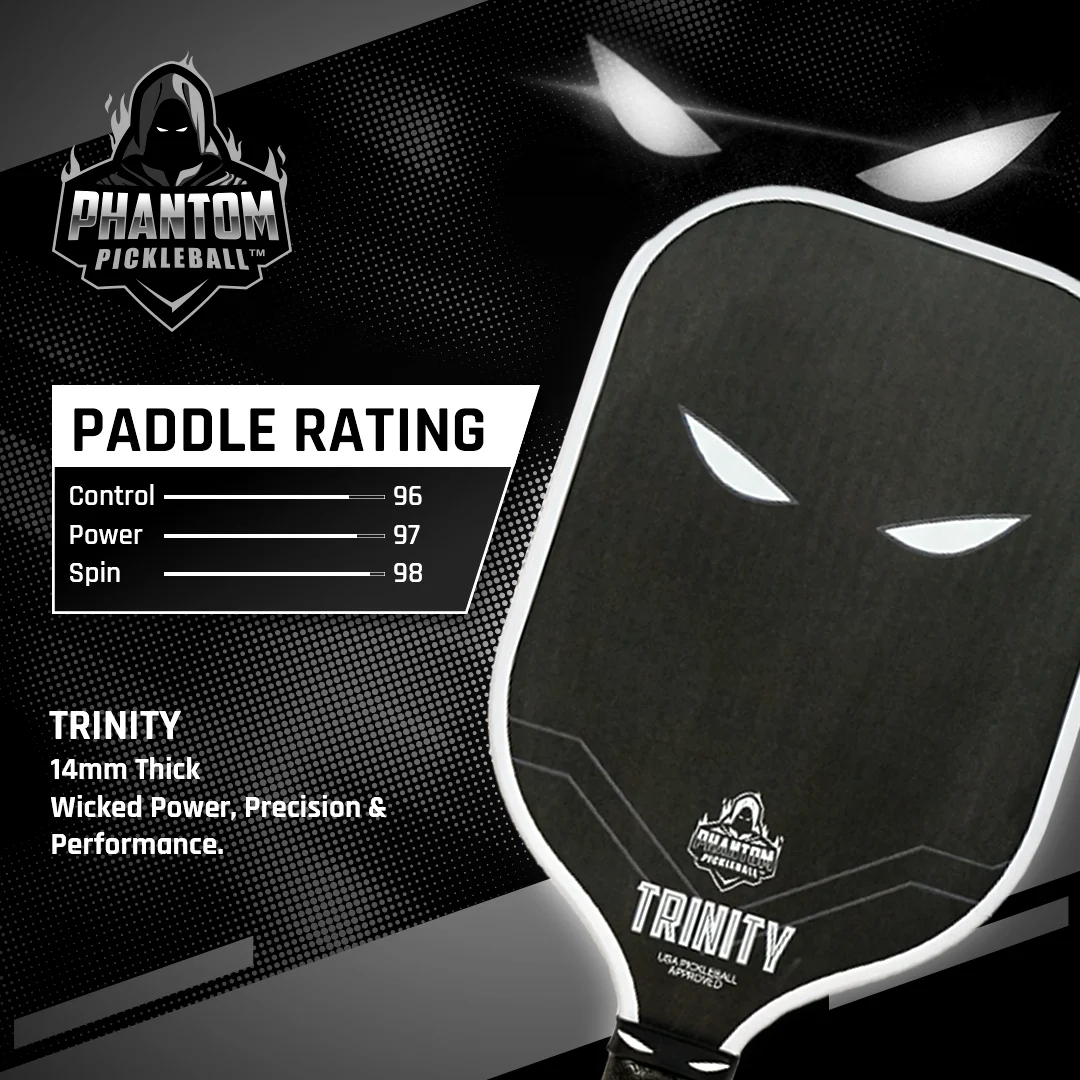 Phantom Trinity (White) 14mm T700 Raw Carbon Fiber Thermoformed Pro Pickleball Paddle & Premium Cover