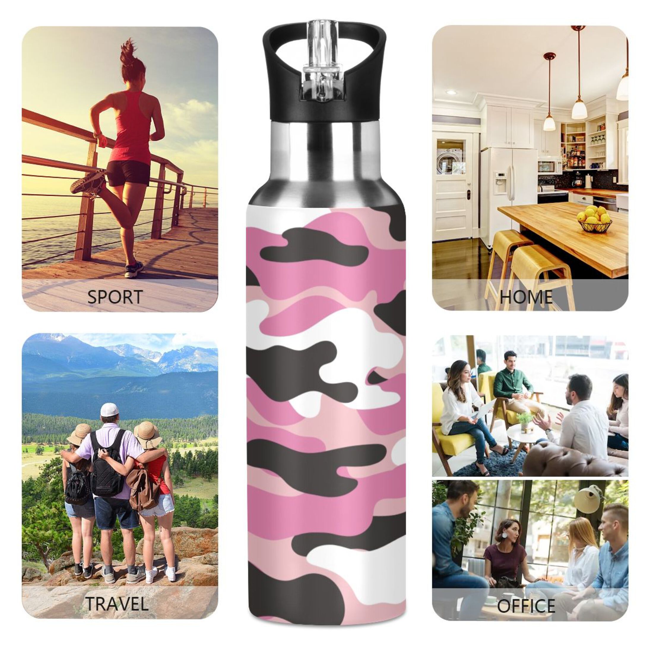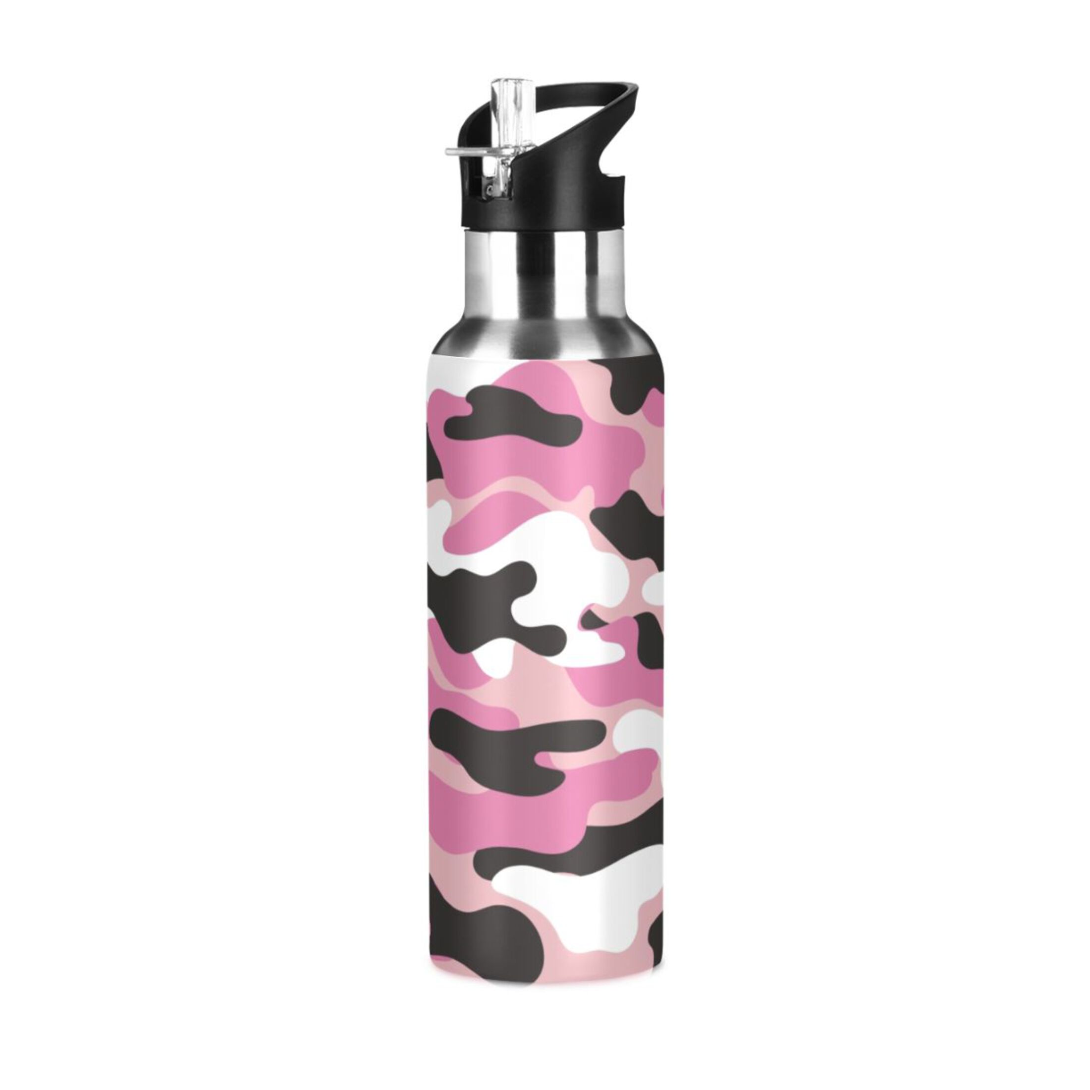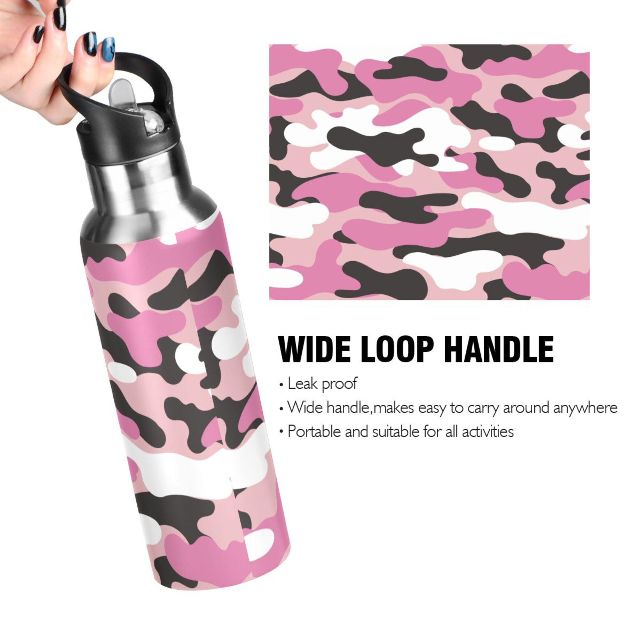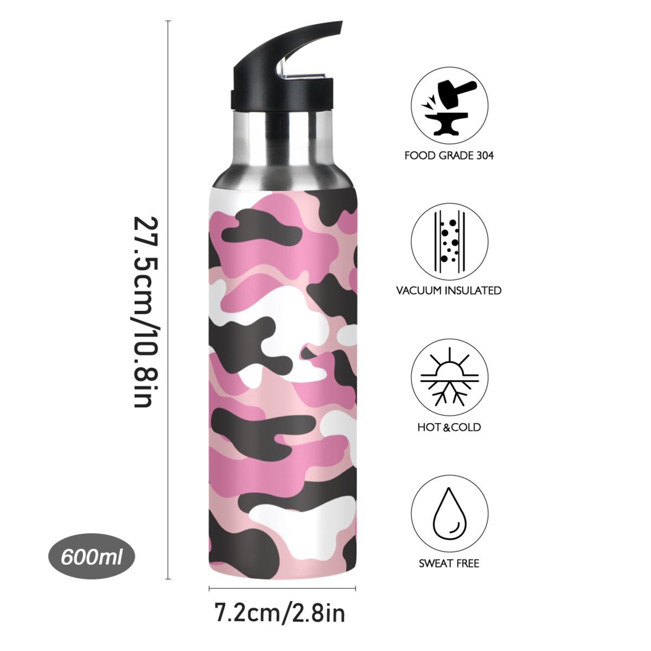 Camouflage Pink Water Bottles Insulated Thermos Kids Stainless Steel Bottle with Straw Lid Flask Leakproof for Sports Gym 20 oz