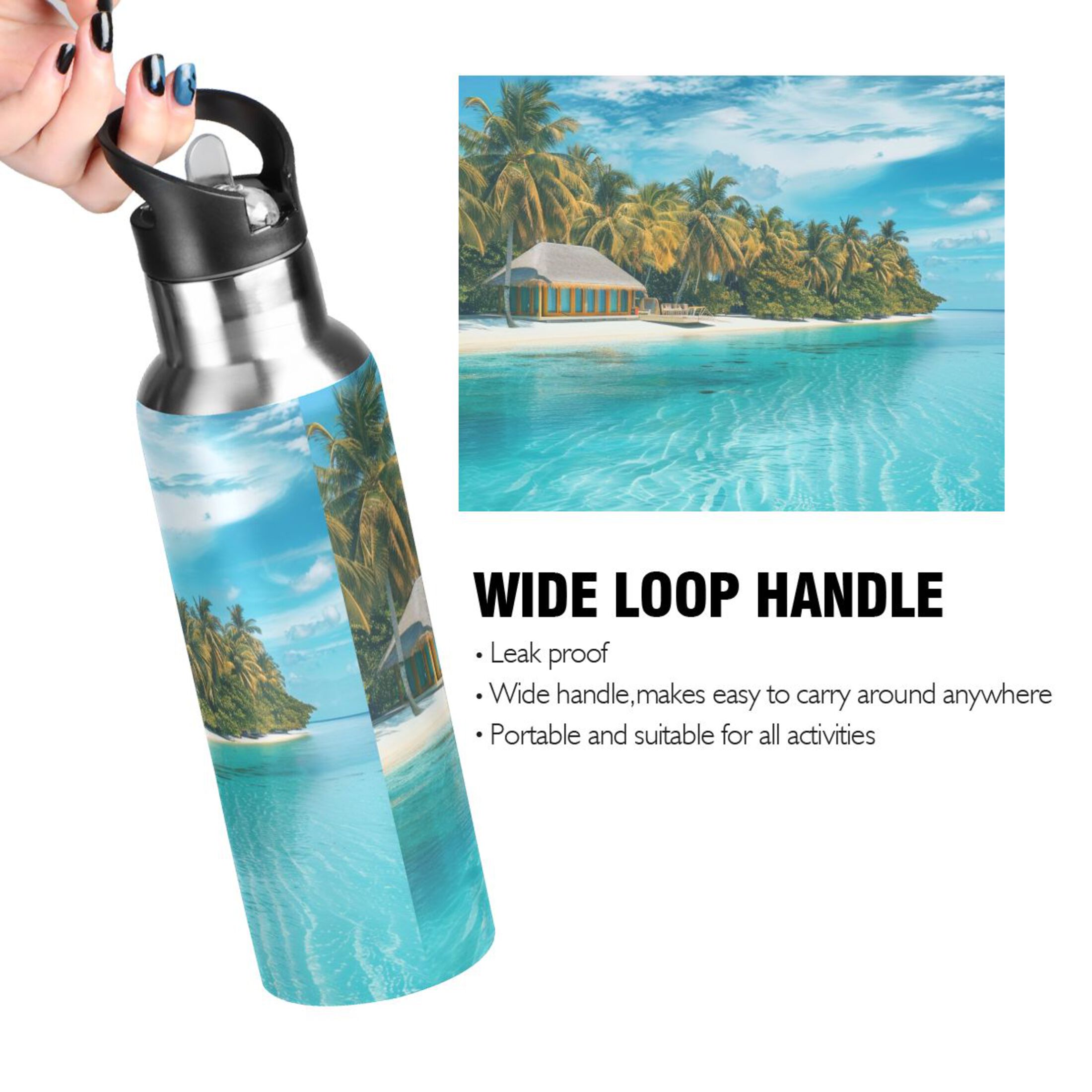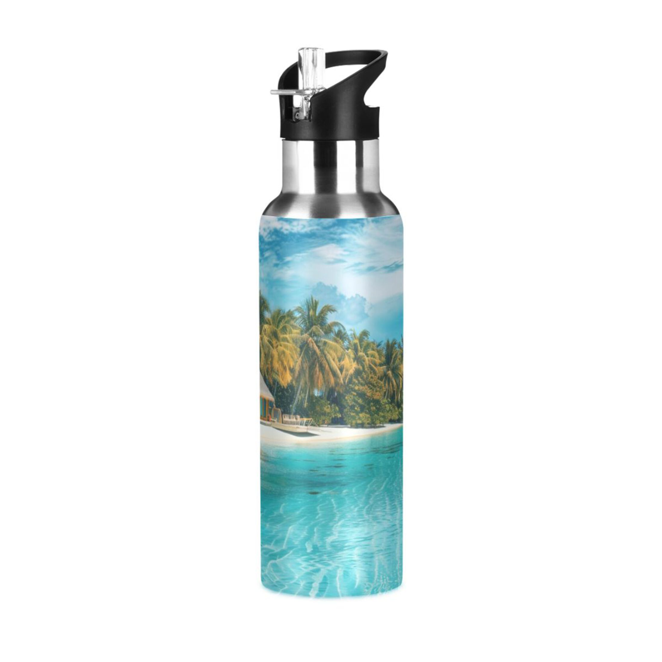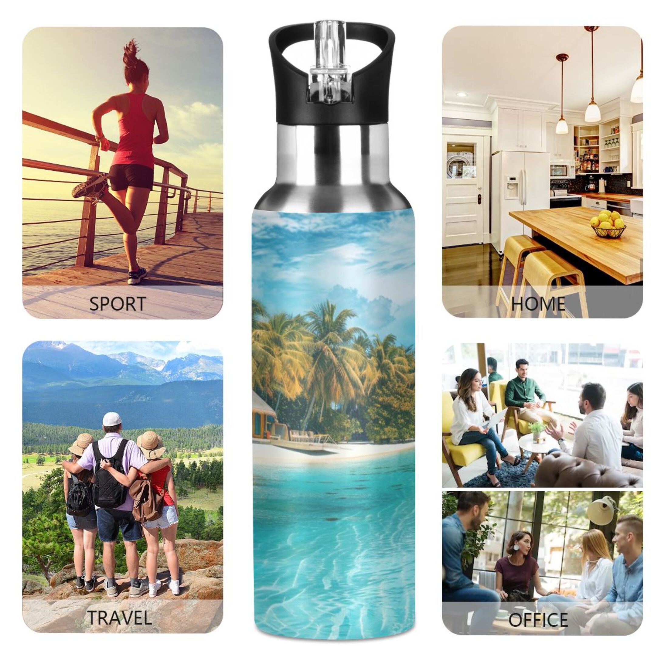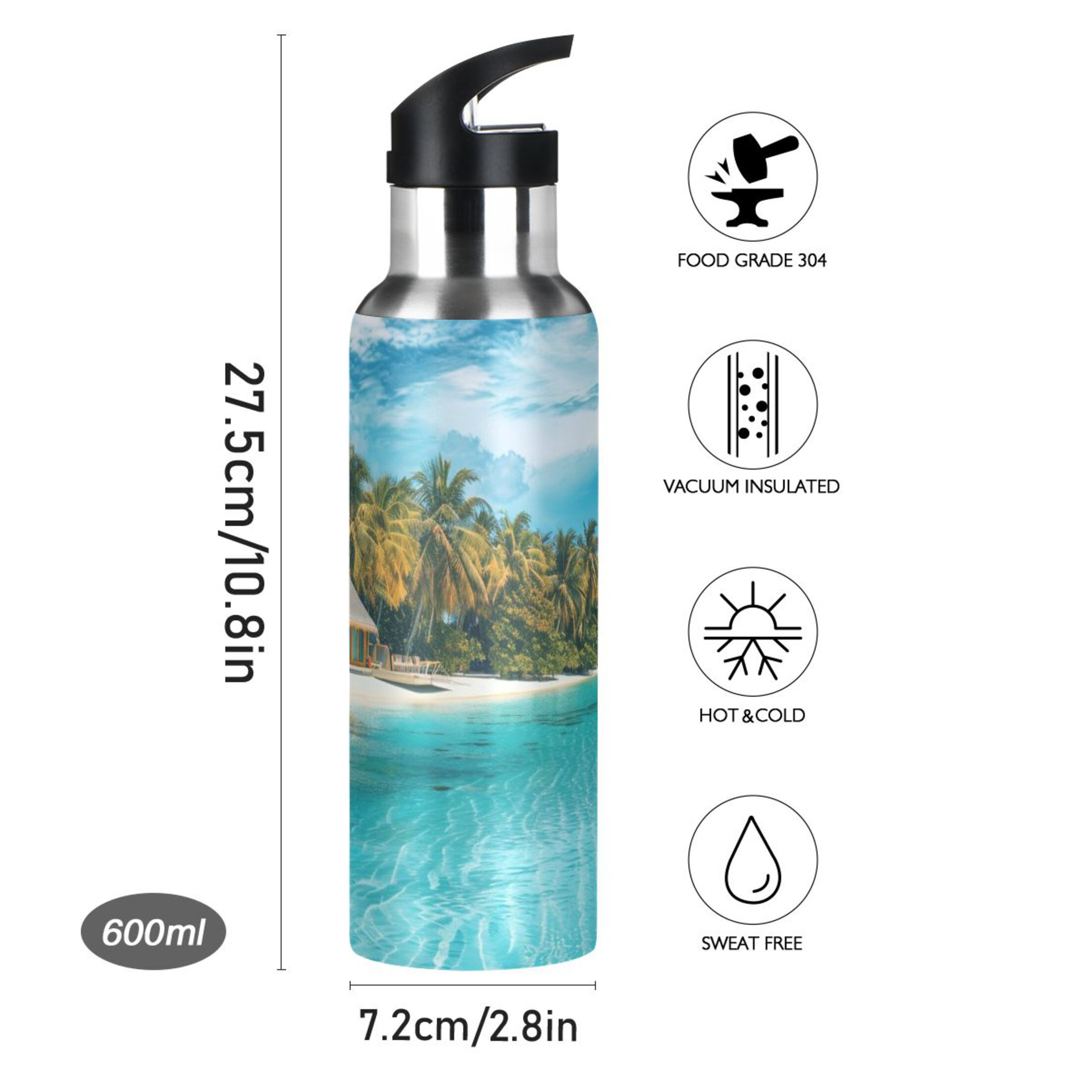 Summer Beach with Sky Water Bottles Insulated Thermos Kids Stainless Steel Bottle with Straw Lid Flask Leakproof for Sports Gym 20 oz