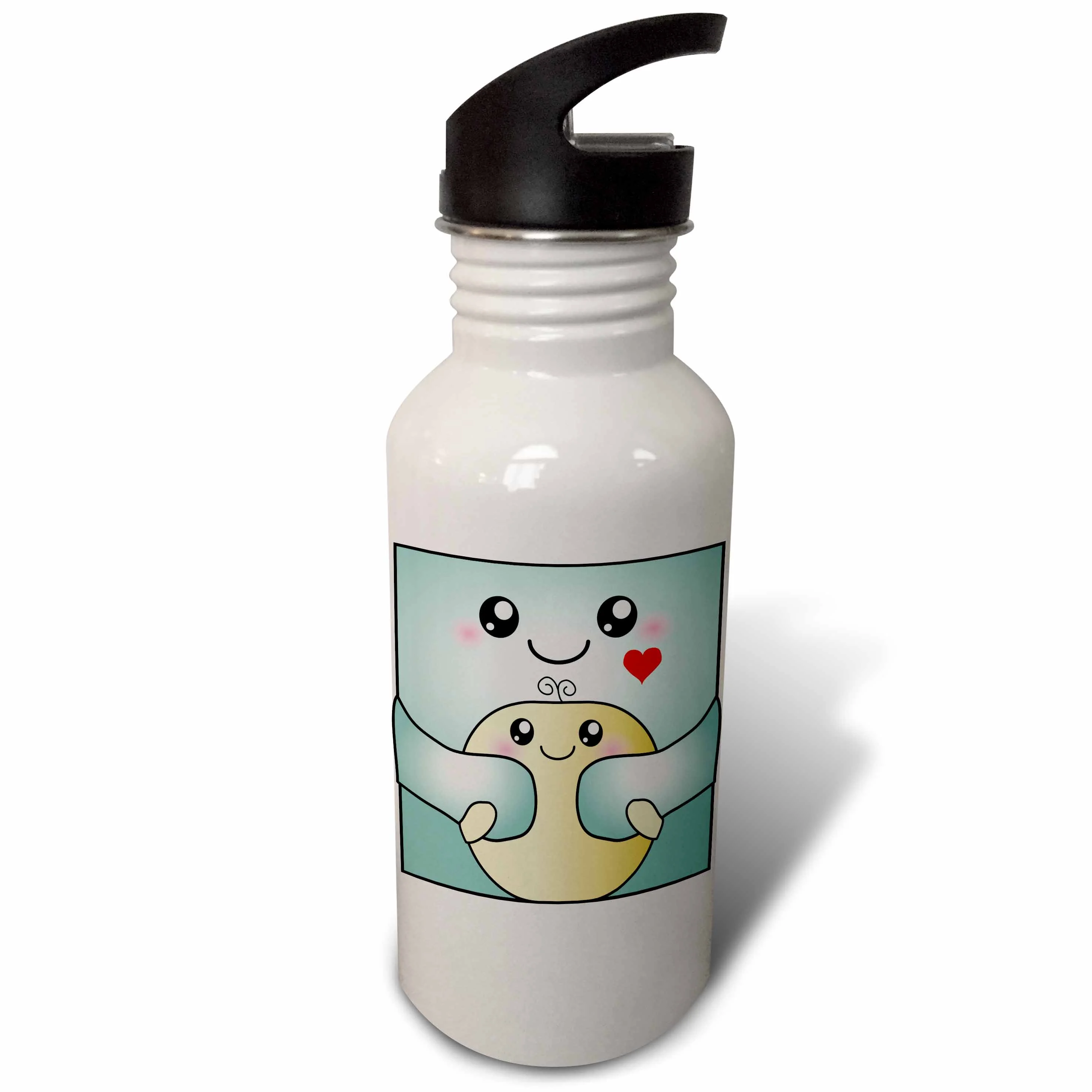 Cute Cartoon Father and child hug kawaii square smiling dad and baby hugs Fathers day gift for daddy 21 oz Sports Water Bottle wb-76598-1