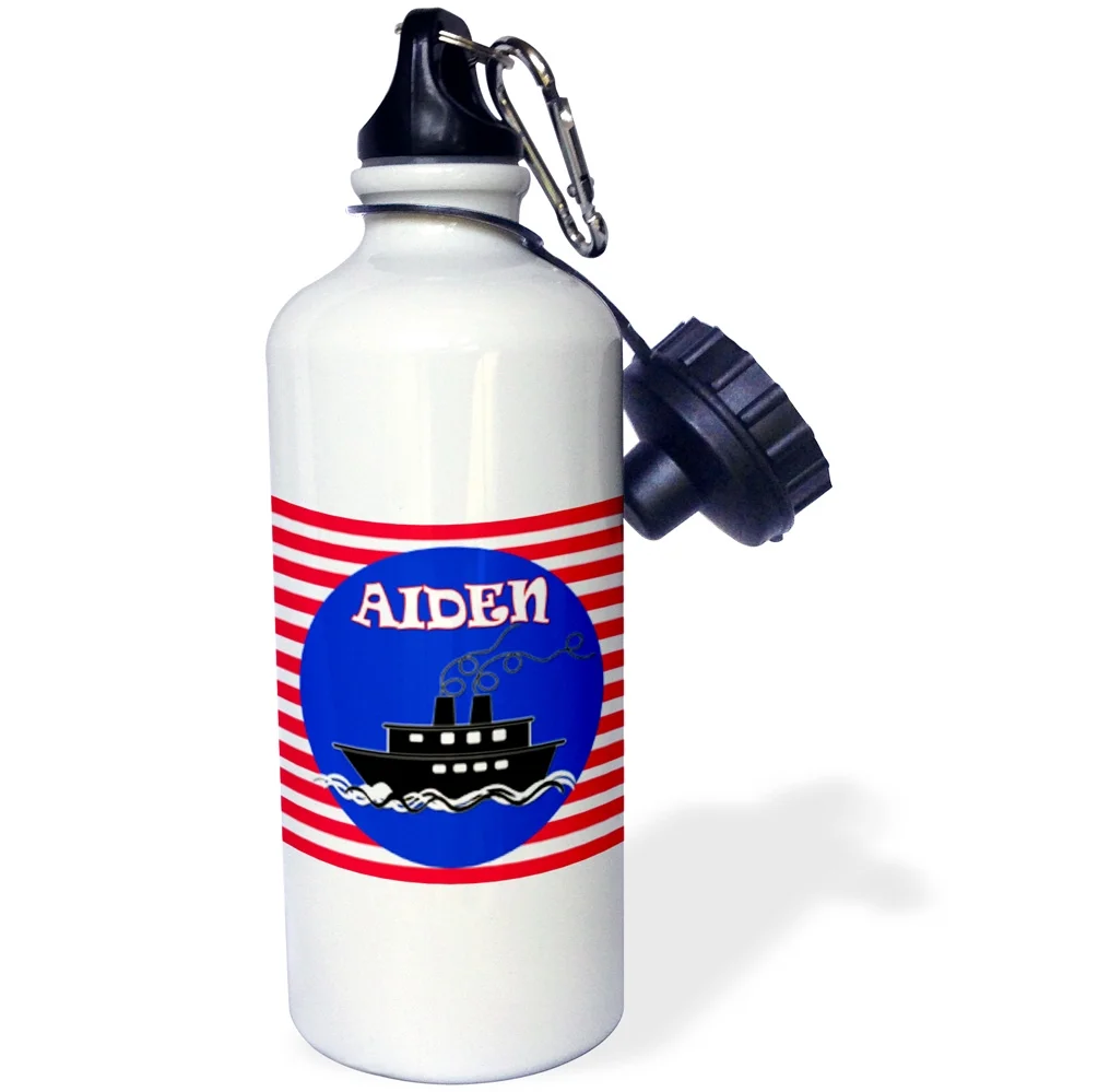 3dRose Personalized. Aiden. Nautical. Fishing boat. Kids décor. - Water Bottle, 21-ounce