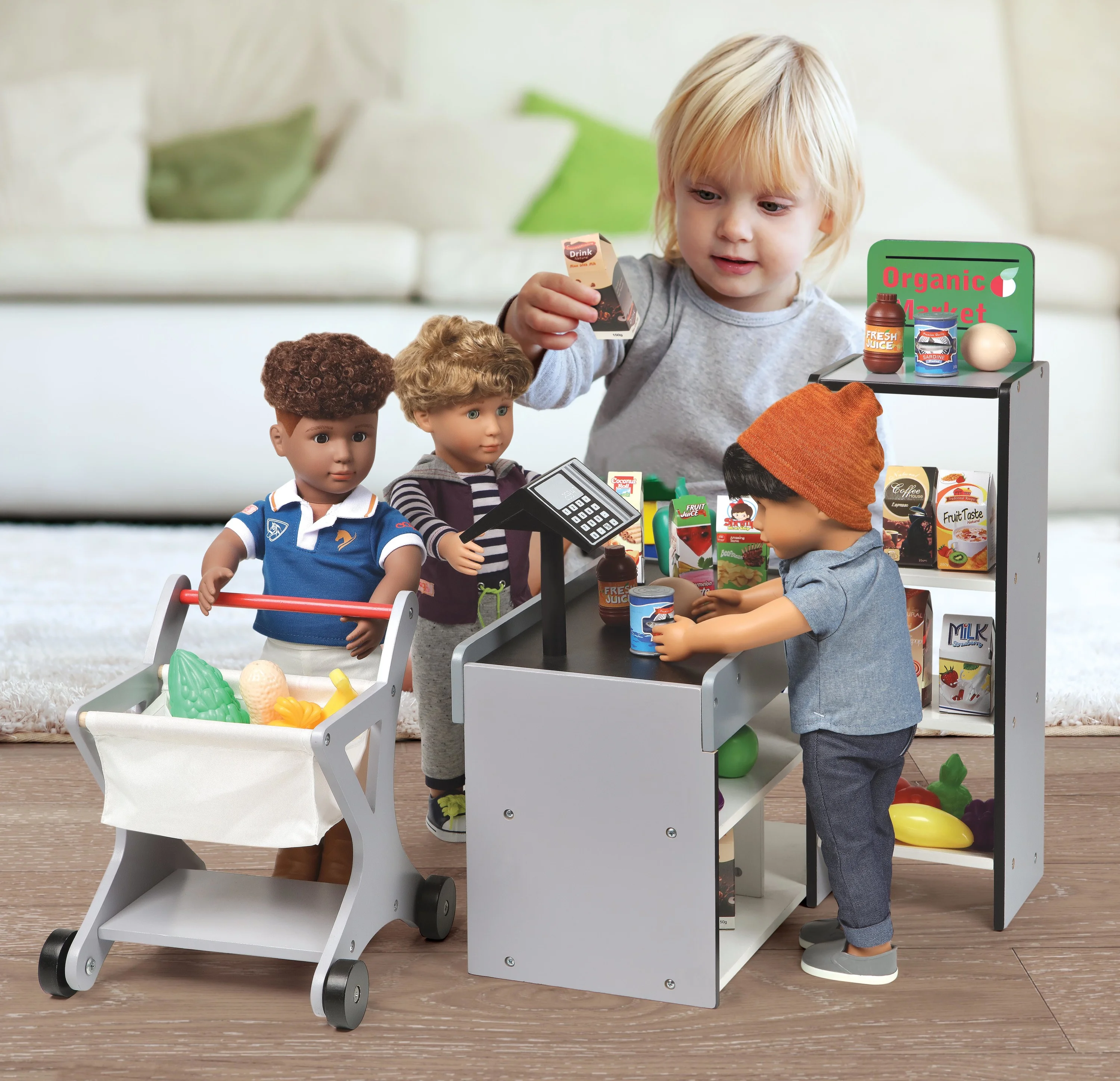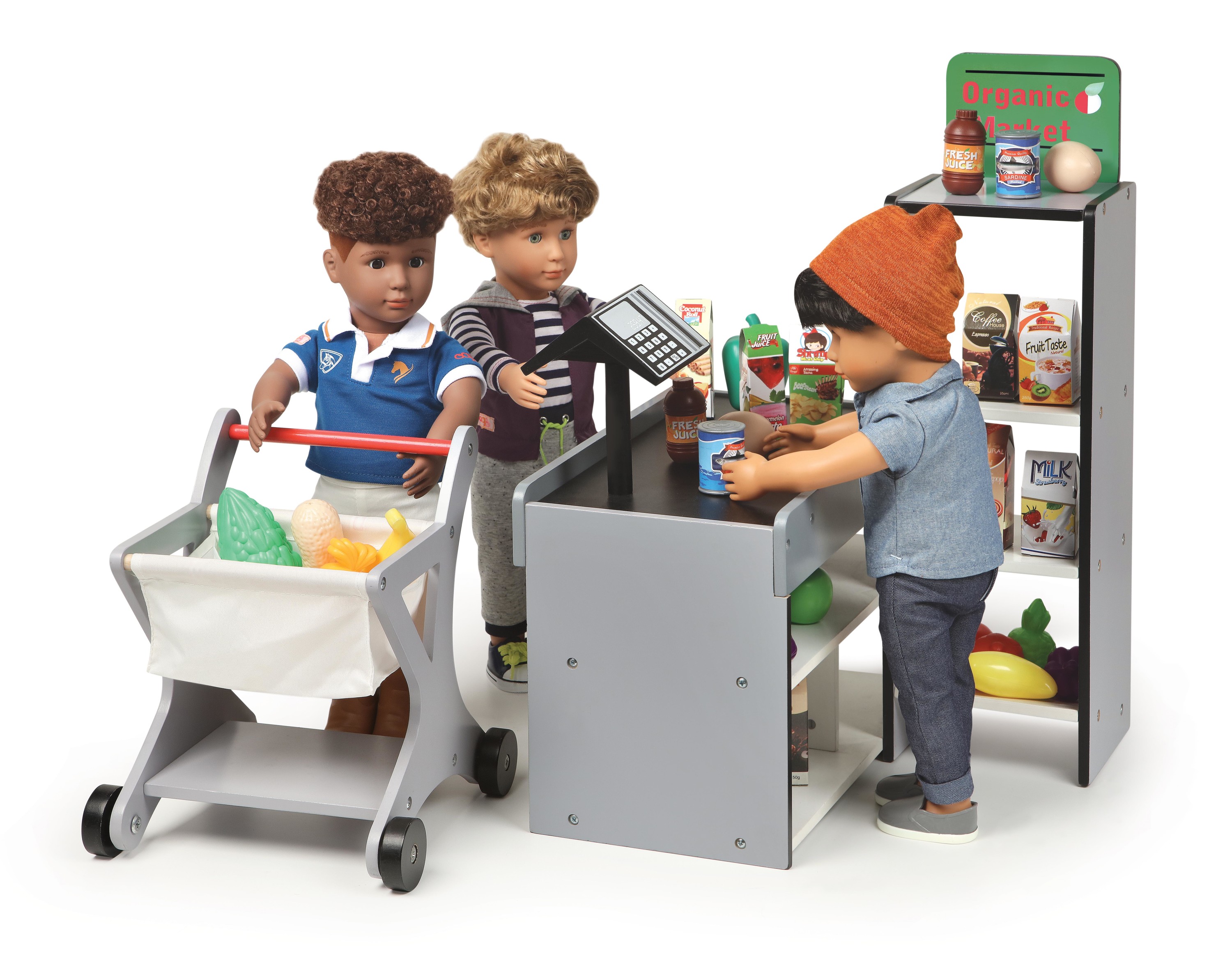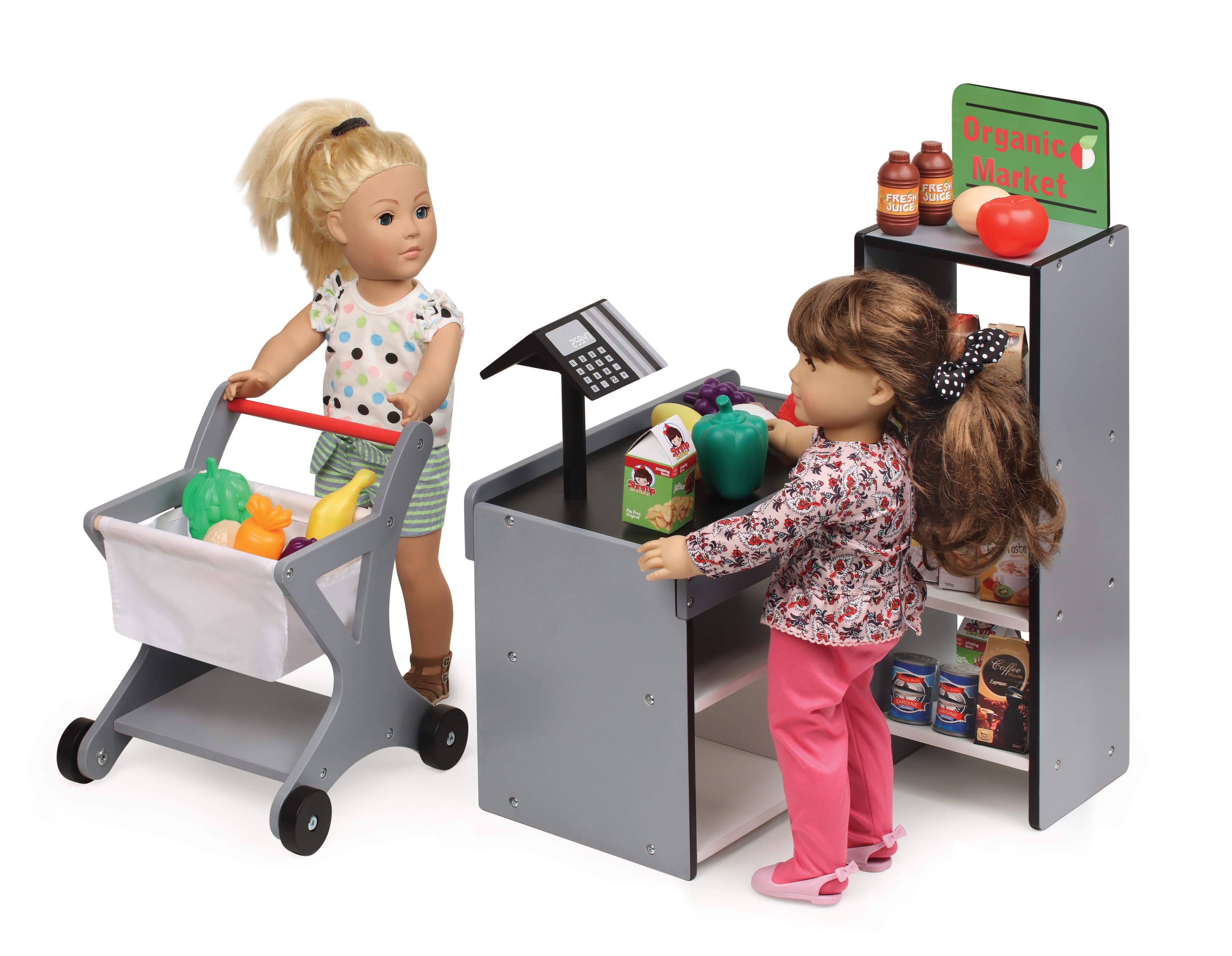 Badger Basket Fresh Market Doll Playset with Shopping Cart and Pretend Food for 18 inch Dolls